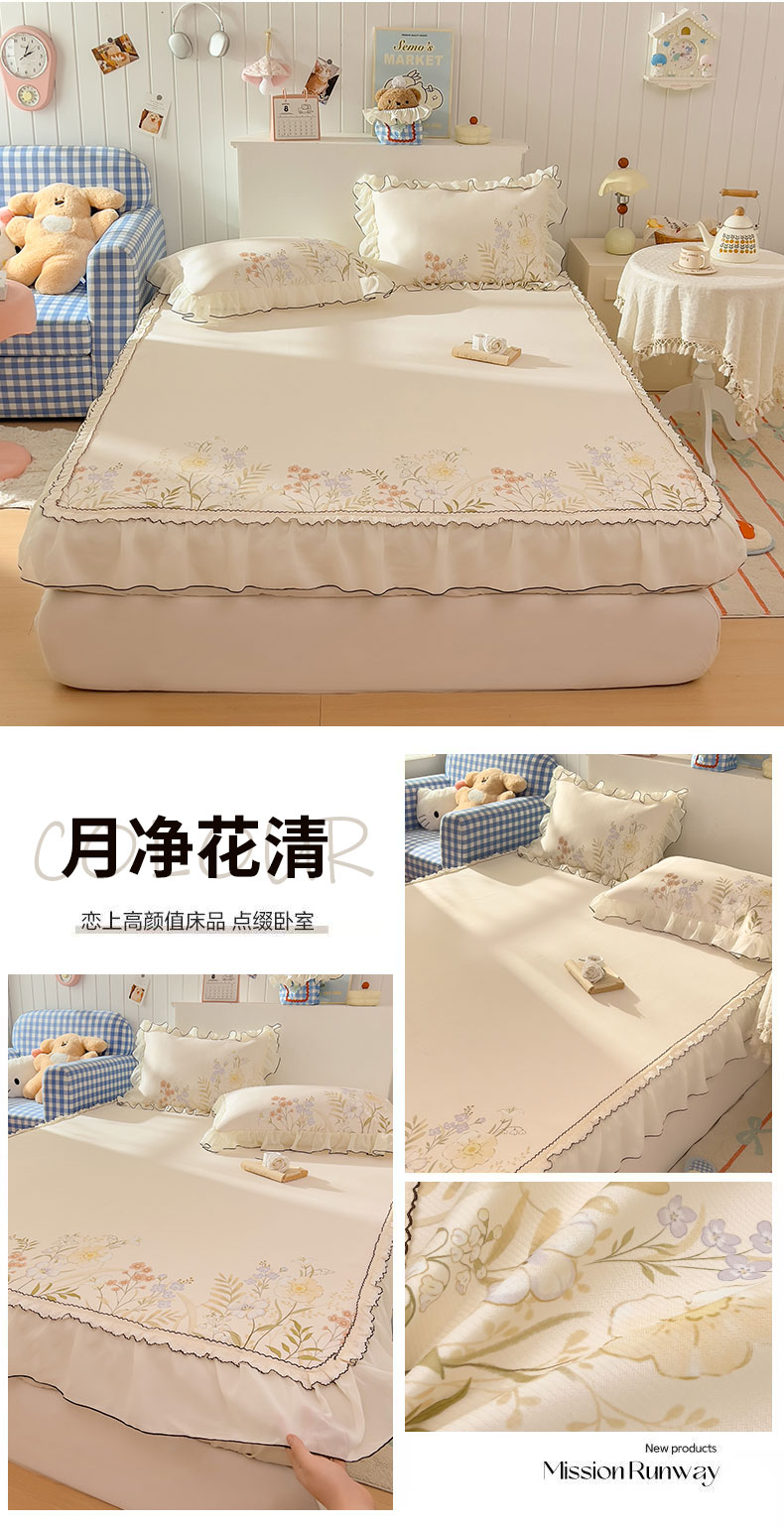 川悦生活 2026新款凉豆豆凉感冰丝床裙三件套 软芙花眠