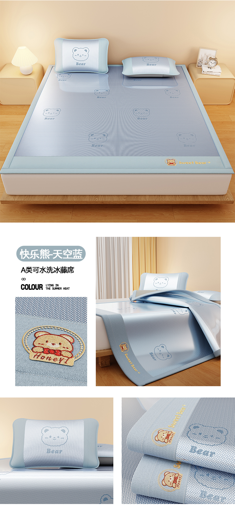 商品名称:(总)卡初家居(原微来) 2026春夏新款快乐熊水洗冰藤床席款床笠款