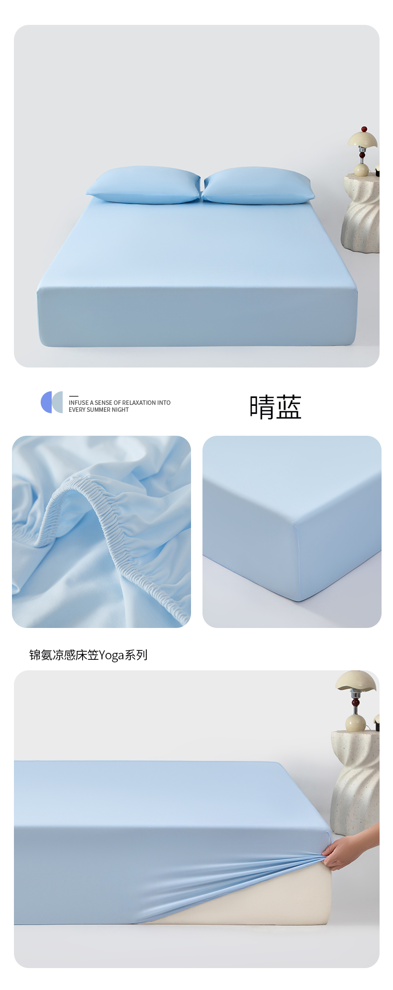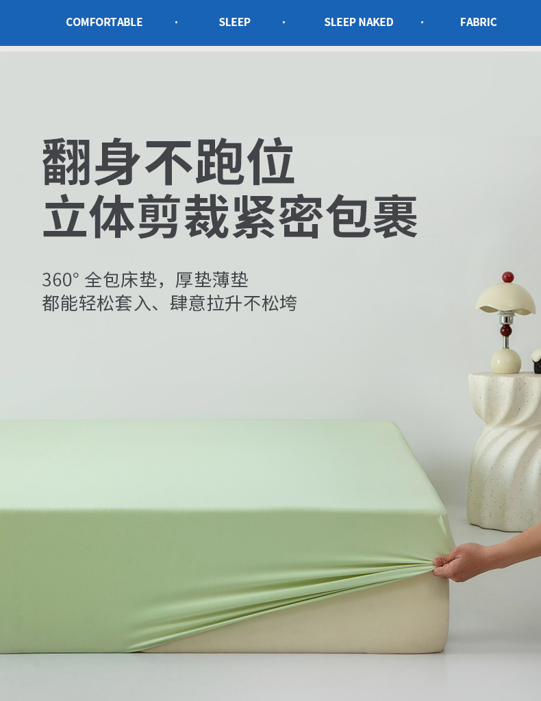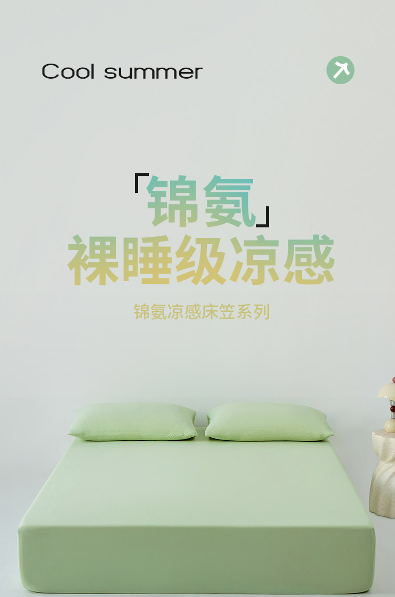 (总)其奥家纺 2026新款锦氨凉感床笠三件套A类耐磨5级0.35凉感有检测报告,香草绿,丁香紫,芦灰,奶油黄,晴蓝,雾粉
