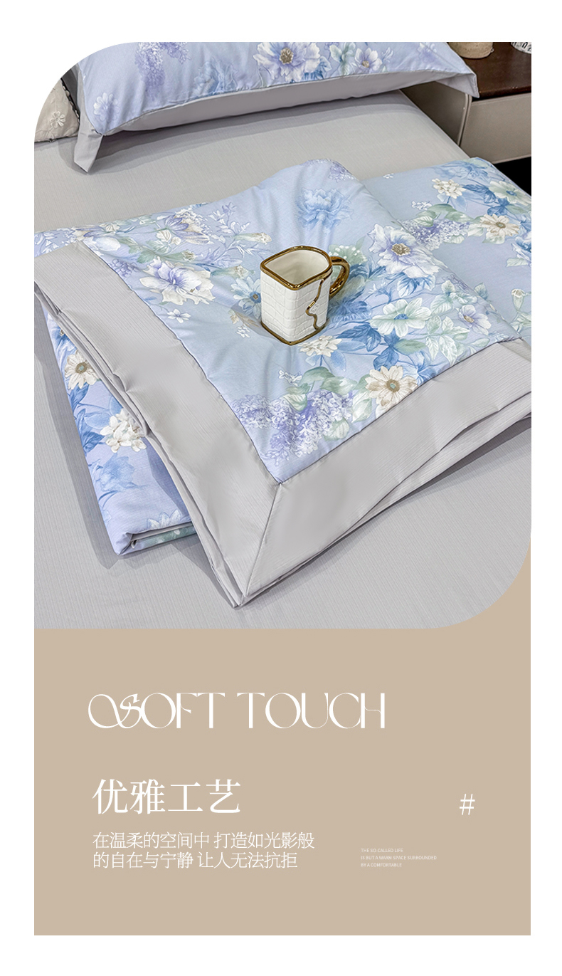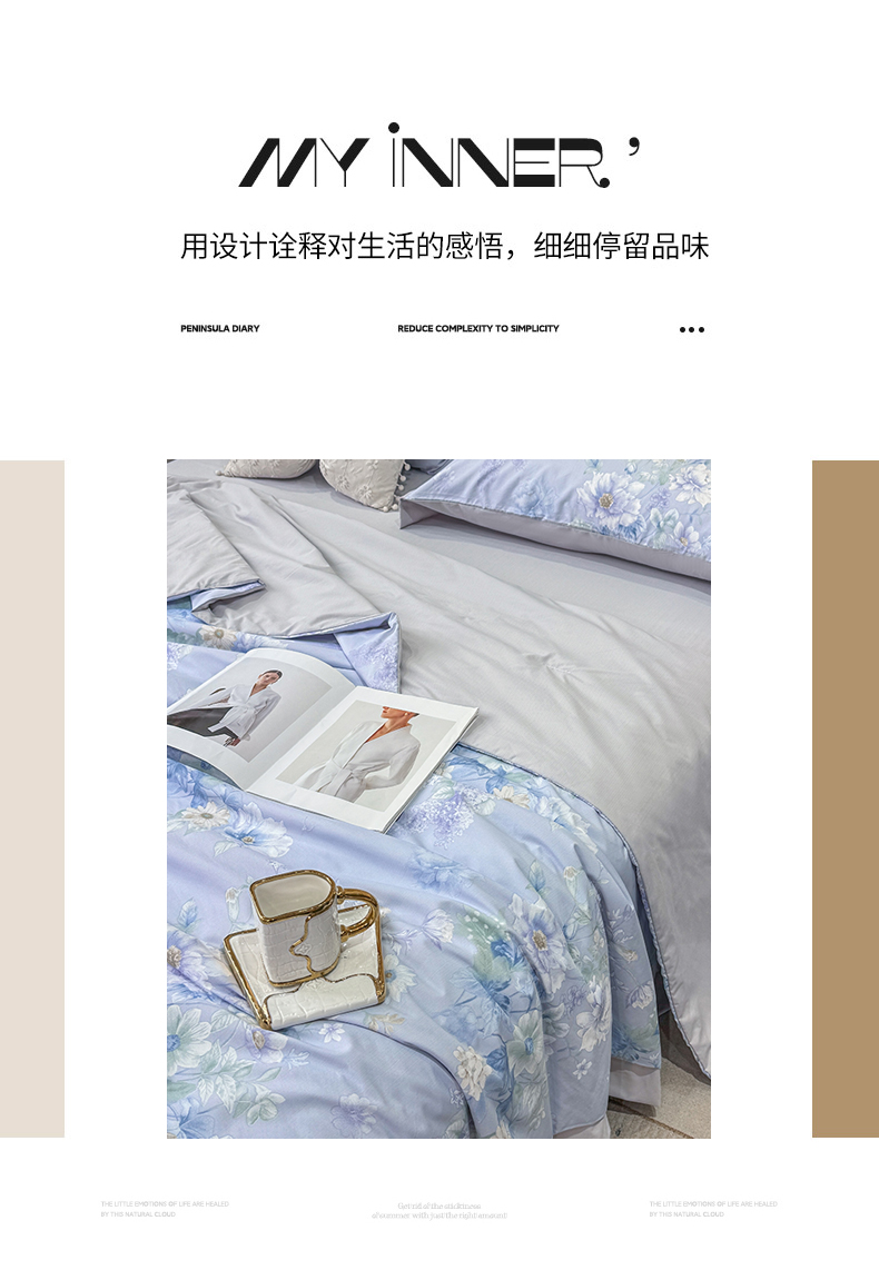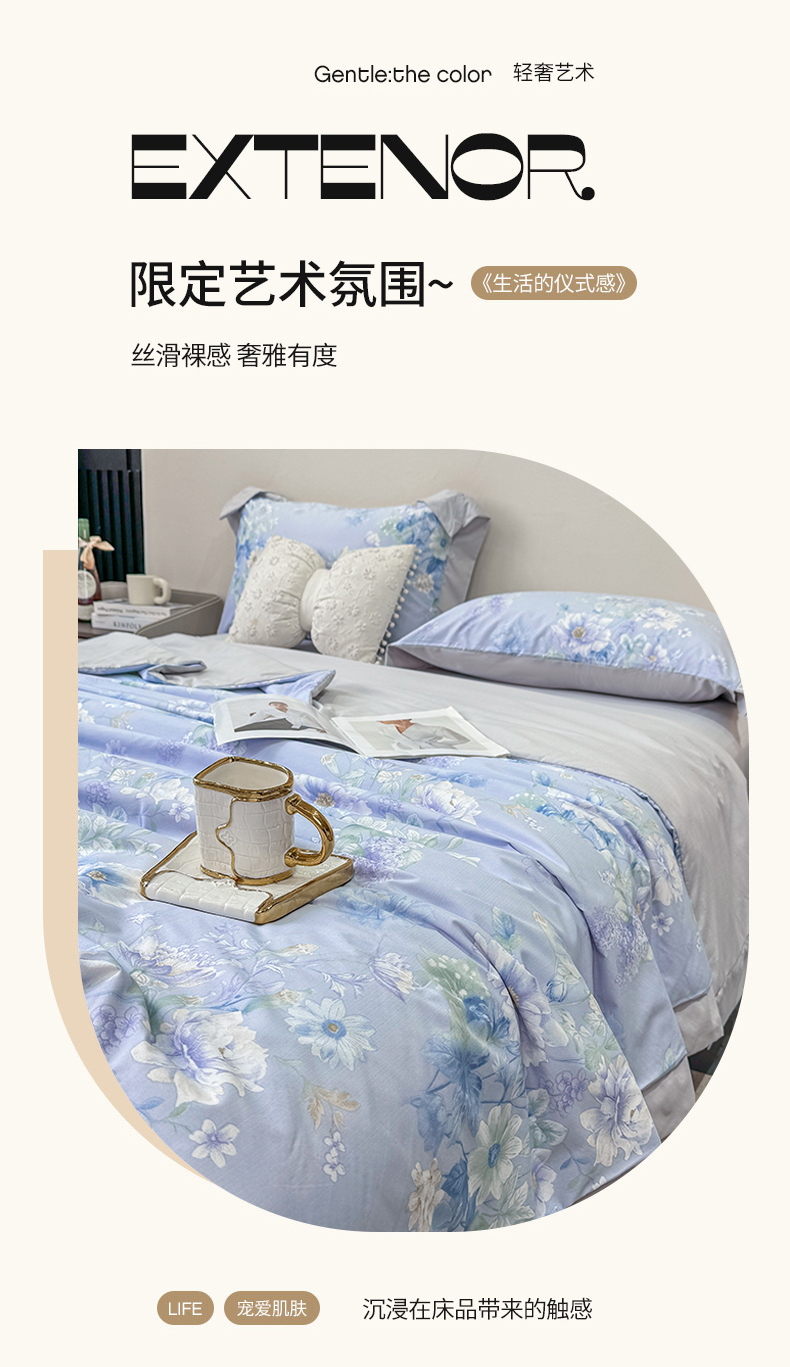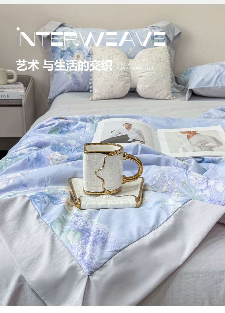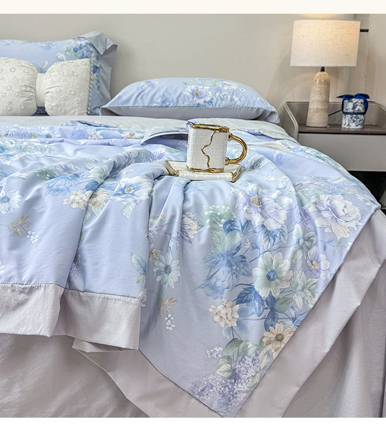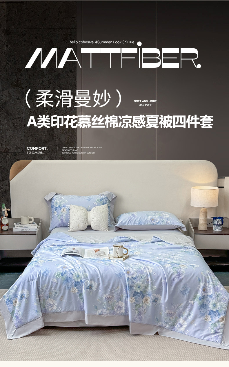 当前位置: 91家纺网 > 商品网购 > 床品套件 > 四件套 > 其它四件套 > 慕木家纺 2026新款A类印花慕丝棉凉感夏被夏凉被空调被四件套 蓝庭叙+灰