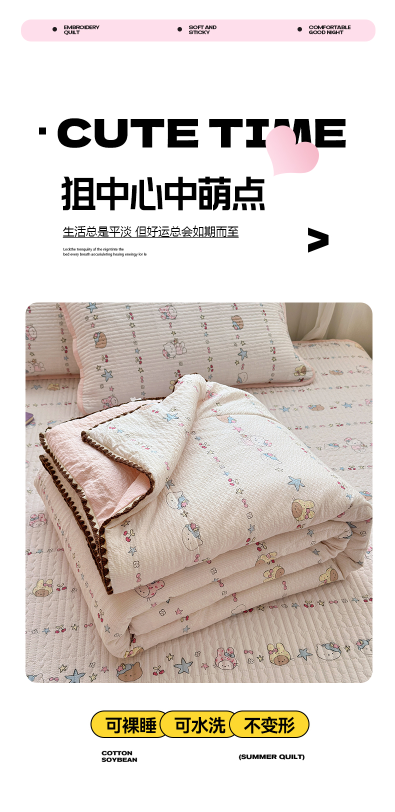 (总)云玲时尚 2026新款A类云感双层纱7A抗菌夏被四件套系列,出逃星星人,绘本小熊,蘑菇屋,绒绒熊,甜兔日记,小狗滑板日,小熊彩虹派对,小熊酱,小熊牛仔包,元气苹果熊
