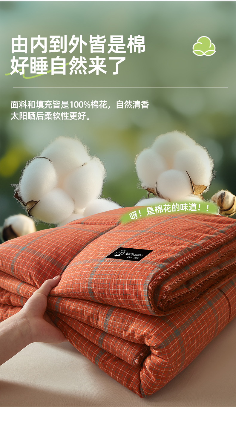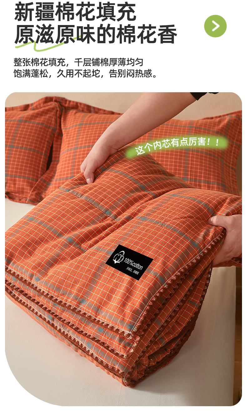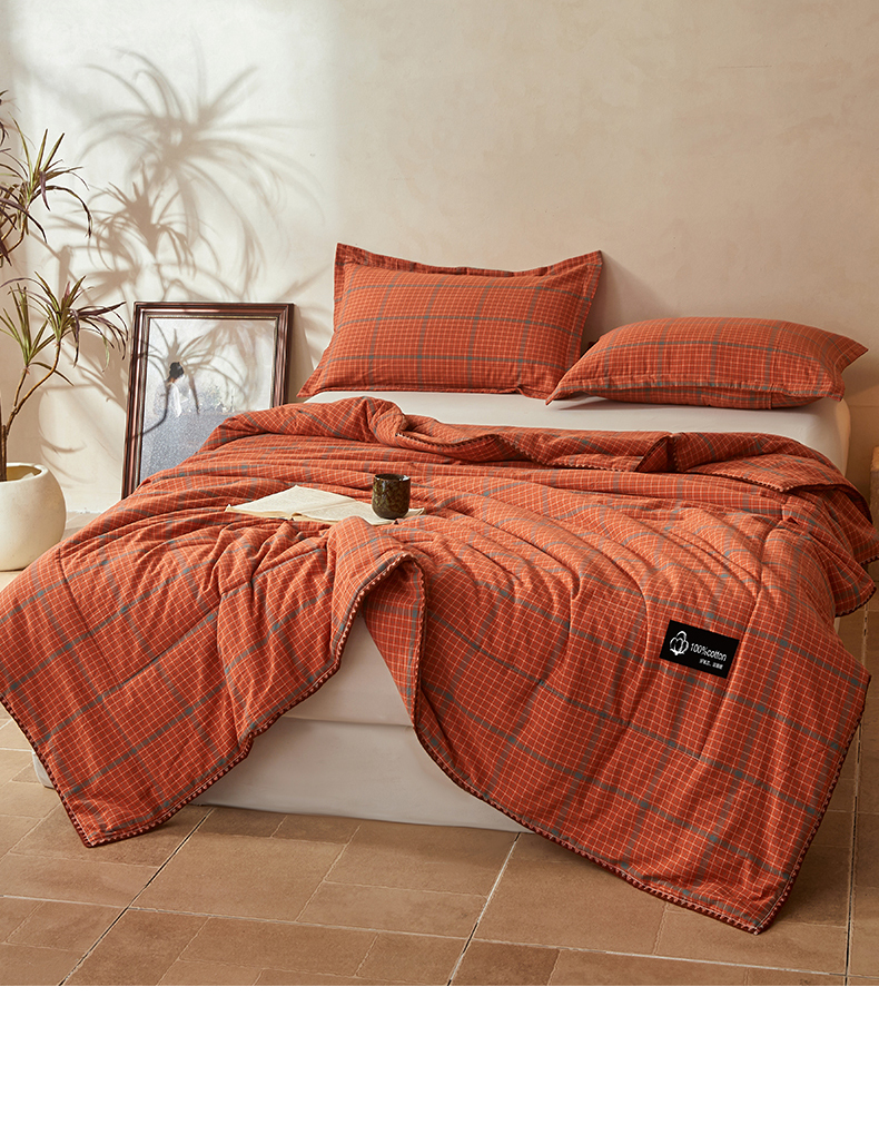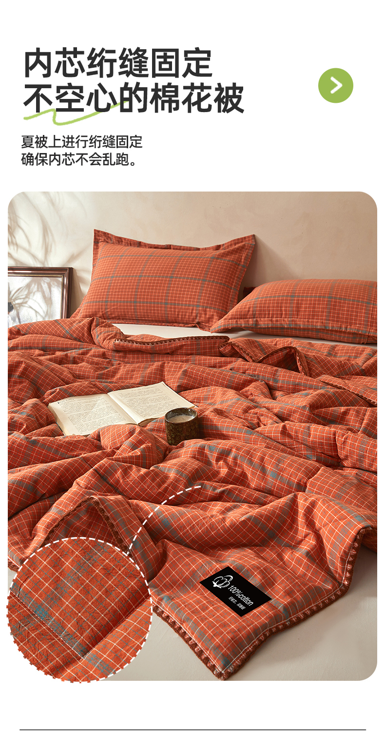 • 91家纺网 家纺一手货源 找家纺 阳光被业 2026新款100%棉花双层纱夏被新疆棉花空调被可机洗夏凉被绣边踩棉工艺 品味--橘色