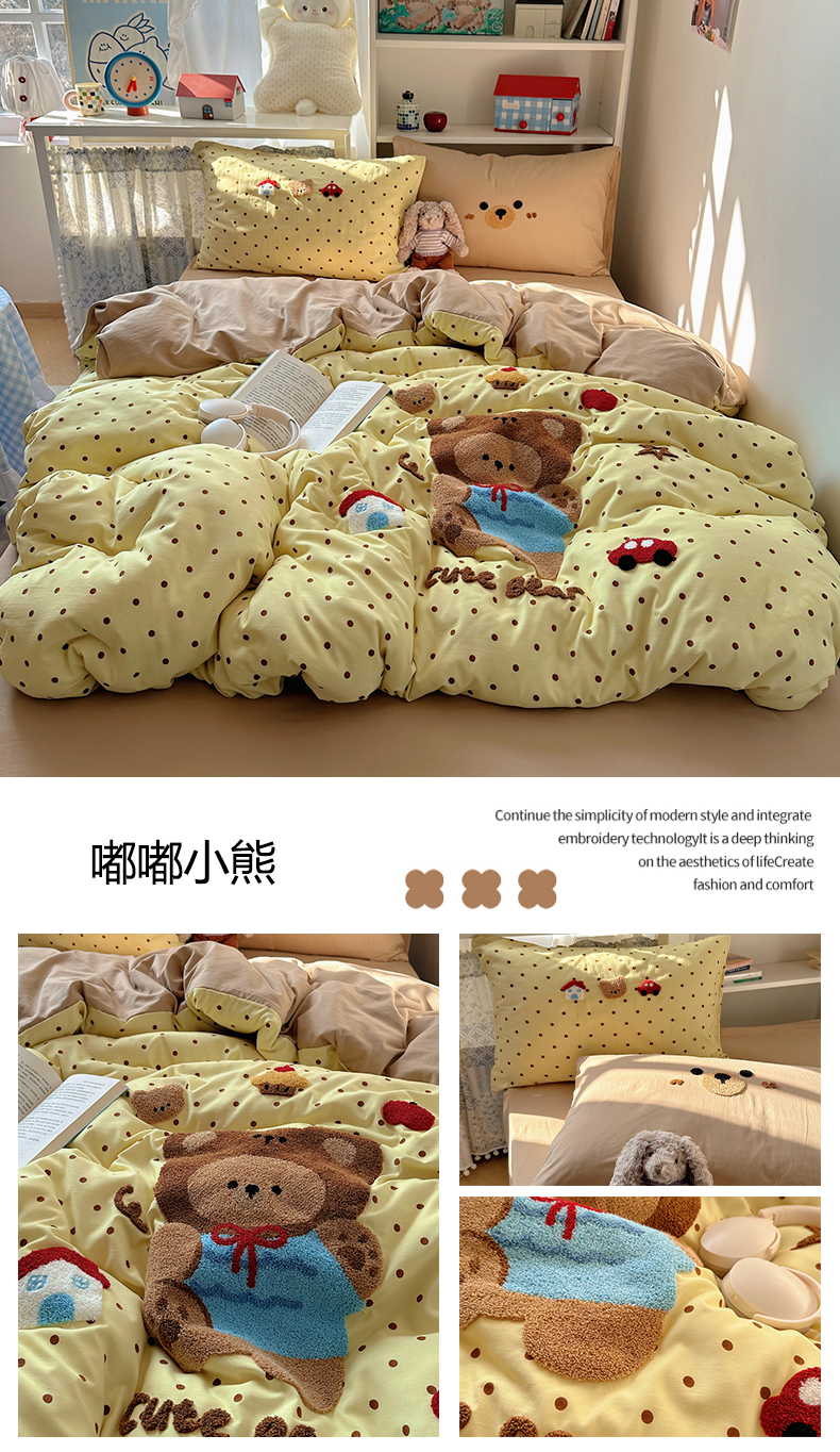 当前位置: 91家纺网 > 商品网购 > 床品套件 > 四件套 > 毛巾绣四件套 > 玉海棠家纺 2026新款高克重超软糯可爱系毛巾绣四件套 萌妹与熊