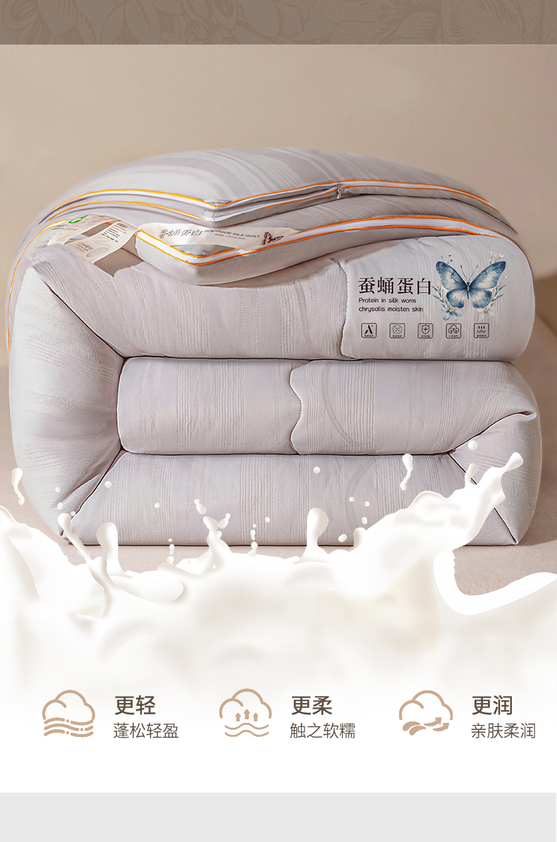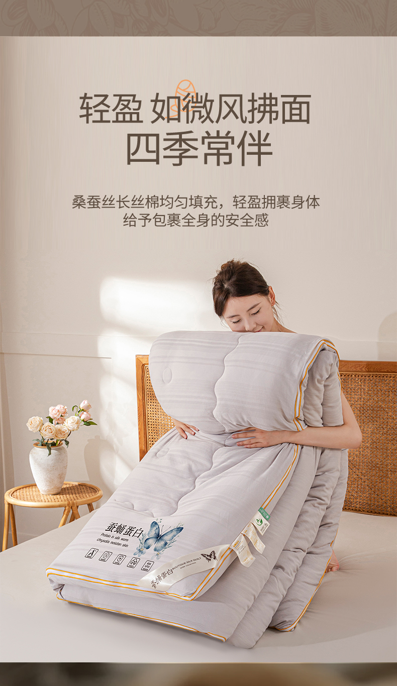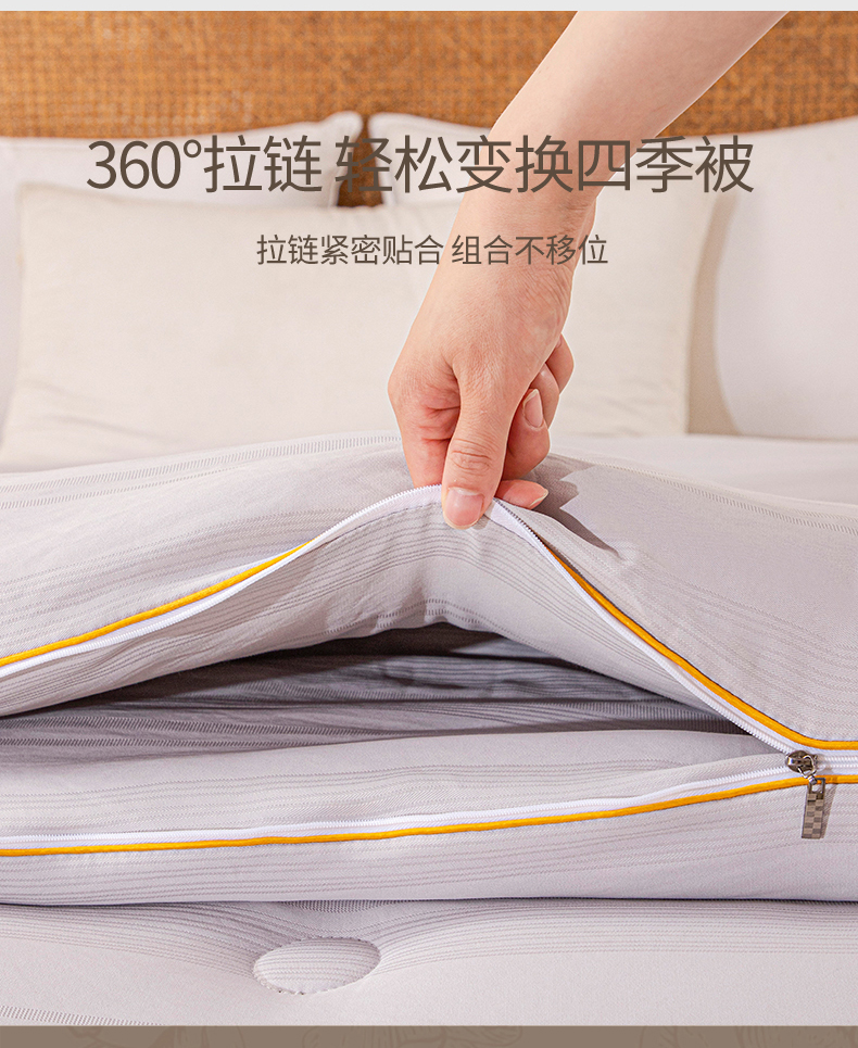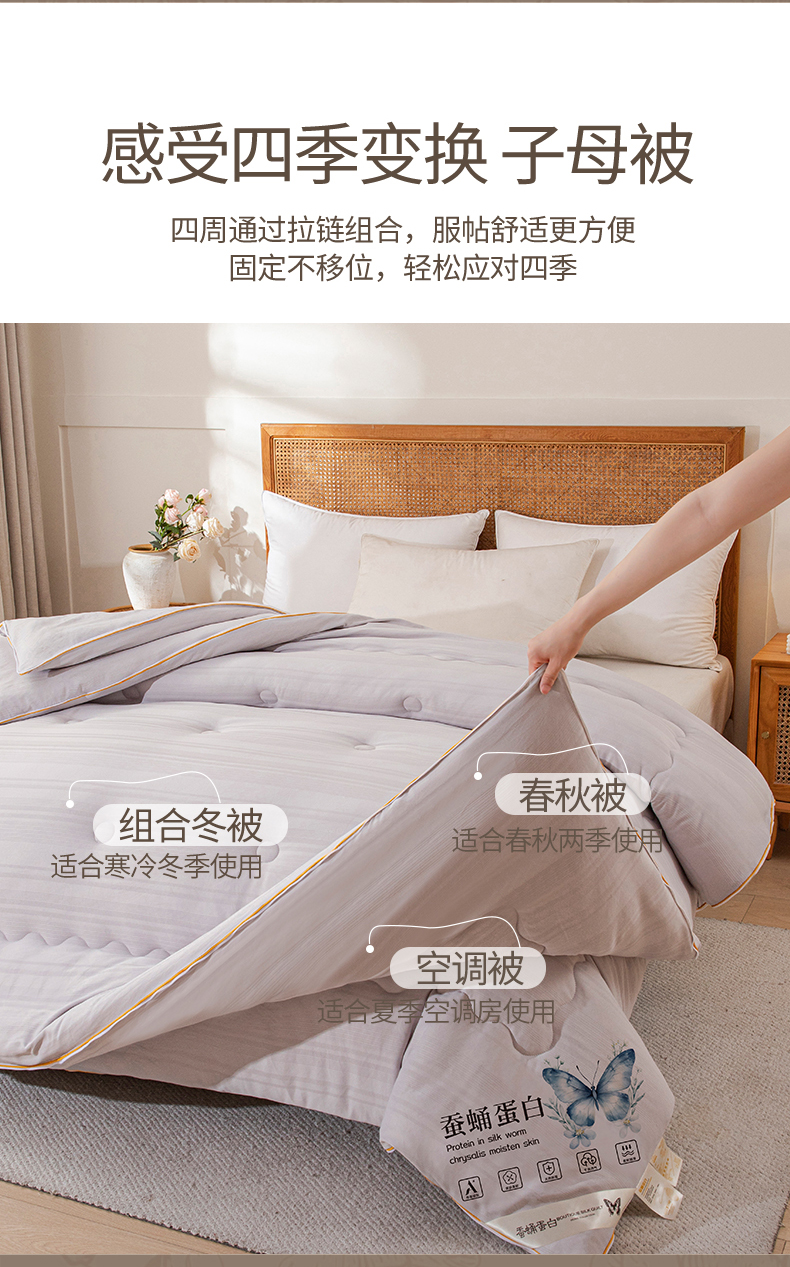 • 91家纺网 家纺一手货源 找家纺 小禹仔家纺 2026新款全棉提花拉链款蚕蛹蛋白子母被冬被春秋被夏被被子被芯加厚棉被-缎条系列 缎条-高级灰