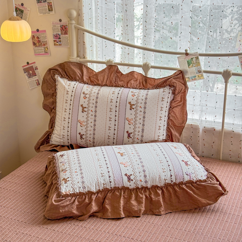 梵希雅 2026新款泡芙纱床盖夏被四件套 栗色木马纹