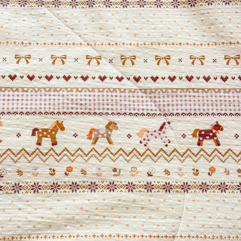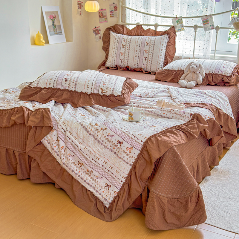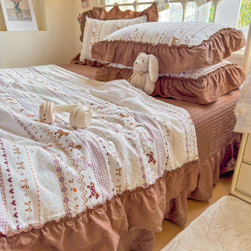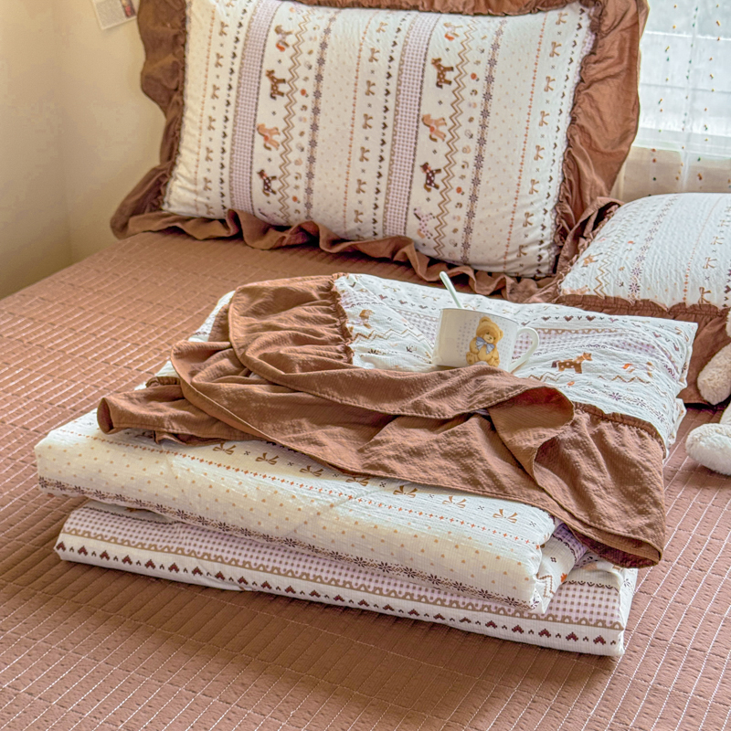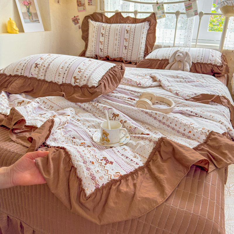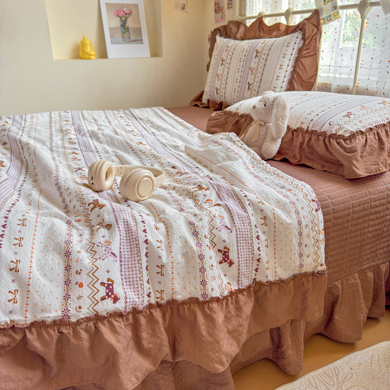 商品名称:梵希雅 2026新款泡芙纱床盖夏被四件套 栗色木马纹