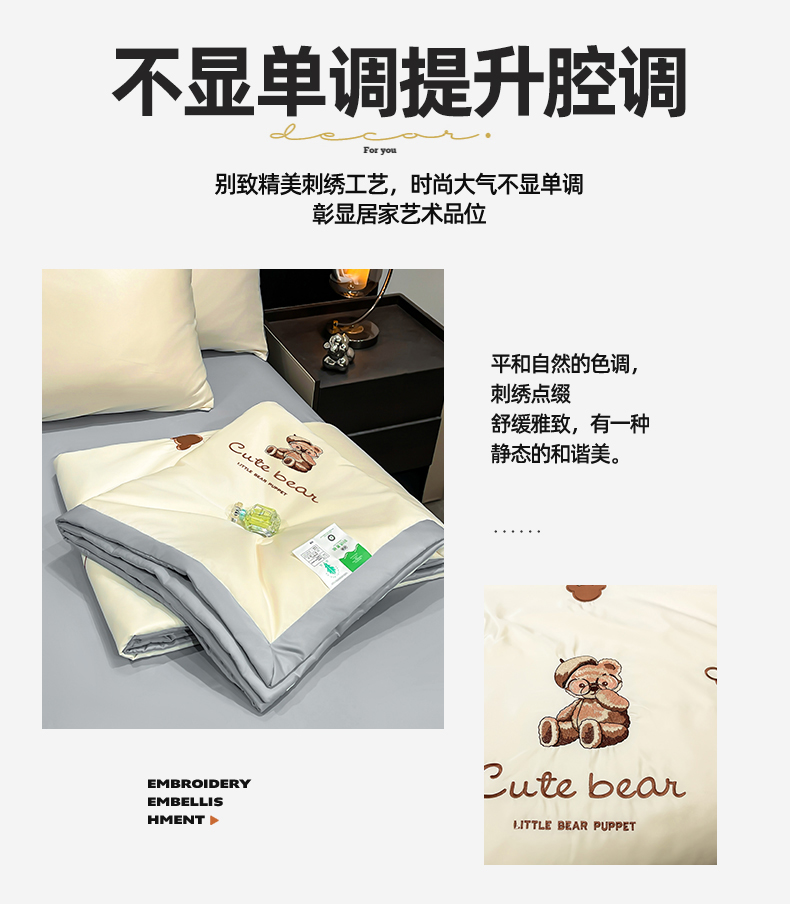 • 91家纺网 家纺一手货源 找家纺 梵蒂莎 2026新款满绣系列-水洗真丝空调被水洗冰丝夏被四件套夏凉被(需要买家秀,加微信) 可爱熊-香槟灰