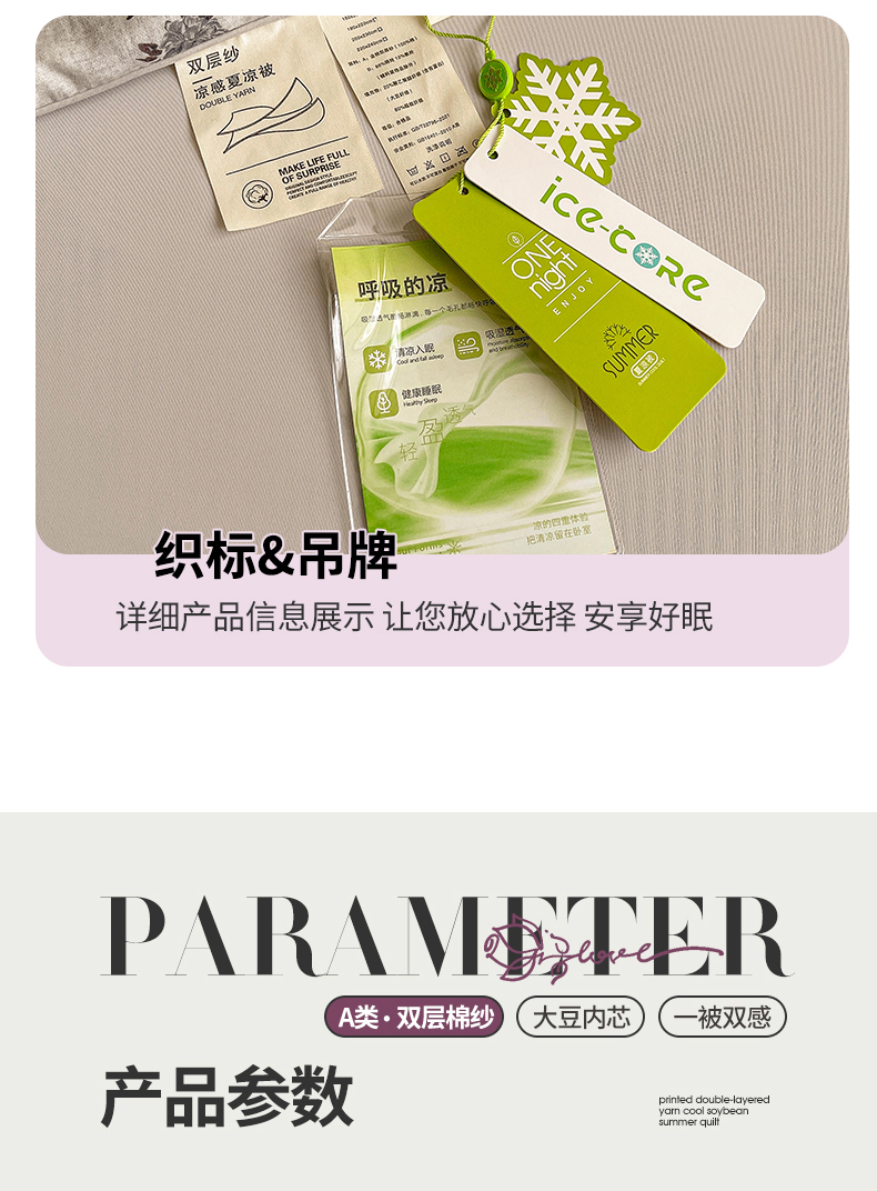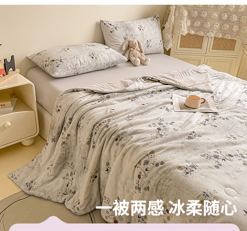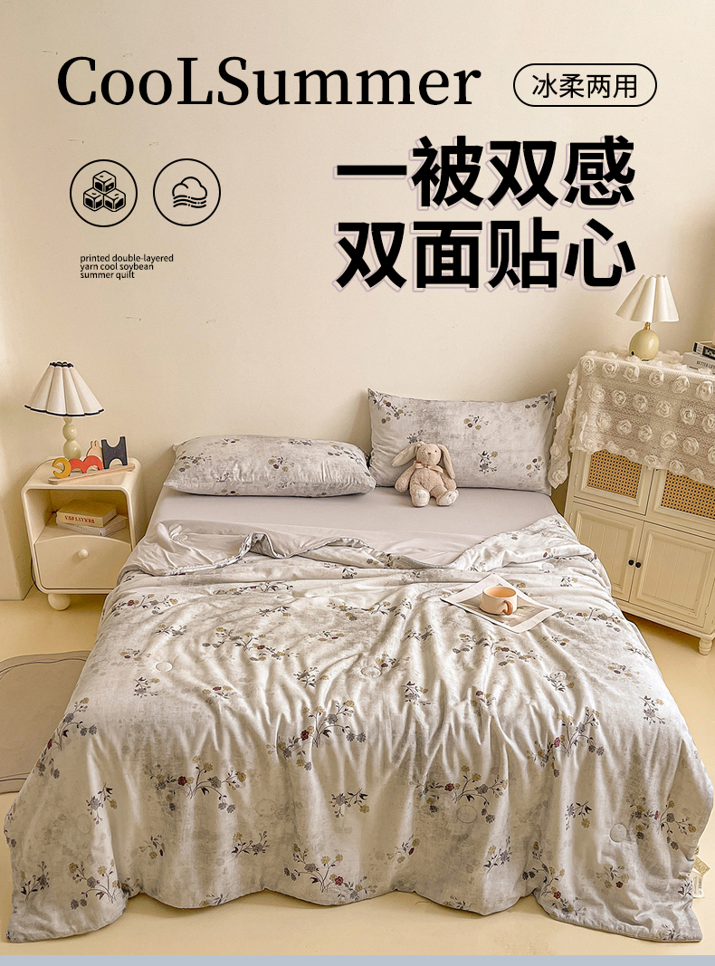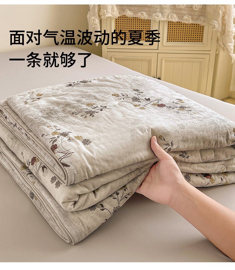 • 91家纺网 家纺一手货源 找家纺 小禹仔家纺 2026新款A类印花双层纱凉感大豆夏被 山茶野