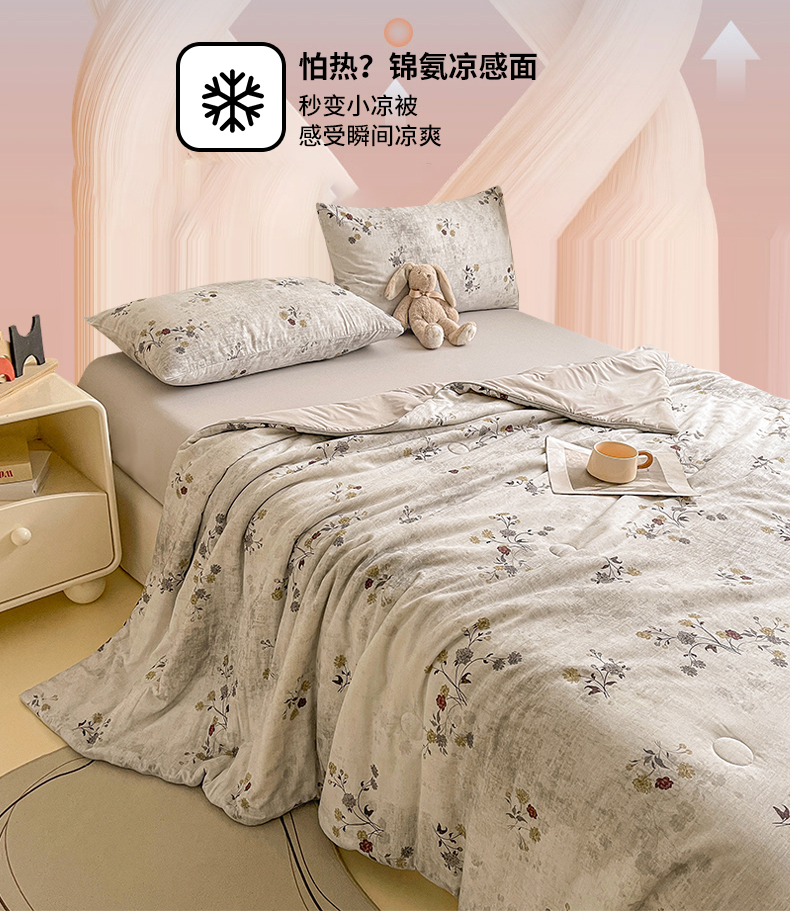 • 91家纺网 家纺一手货源 找家纺 (总)小禹仔家纺 2026新款氨纶凉感印花夏被,夏瑶绿,半山花,风荷举,花陌语,曼莎,木绵芙,沐野,晴川,樱絮,櫻绯雨,薄荷绿,冰感粉,冰感粉拼薄荷绿,藏青拼天空蓝,米色,天空蓝,天空蓝拼米色,烟云灰,烟云灰拼浅灰,优雅紫