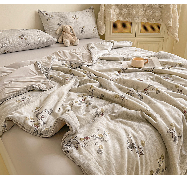 小禹仔家纺 2026新款A类印花双层纱凉感大豆夏被 山茶野