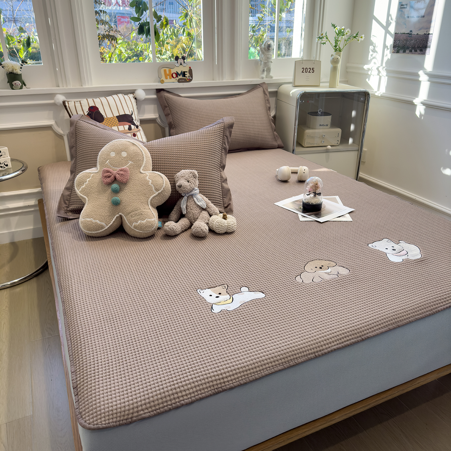 (总)几禾 2026新款华夫格刺绣款凉席-床席款,懒懒小憩-床席款,可可喵派-床席款,奶冻喵-果绿-床席款,奶冻喵-蓝-床席款,趣味腊肠狗-床席款,躺躺岛-灰-床席款,躺躺岛-咖啡棕-床席款,兔免星人-床席款,组合图