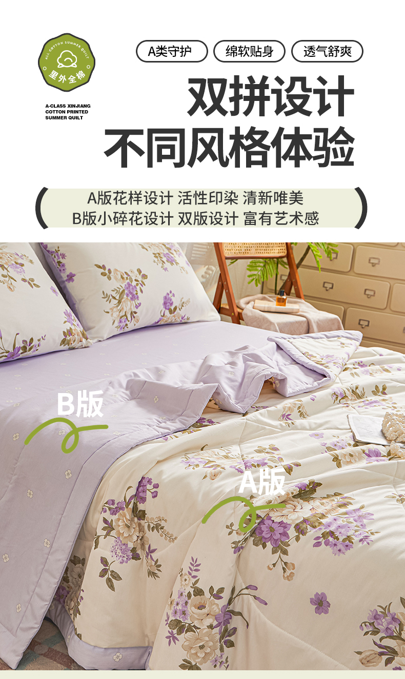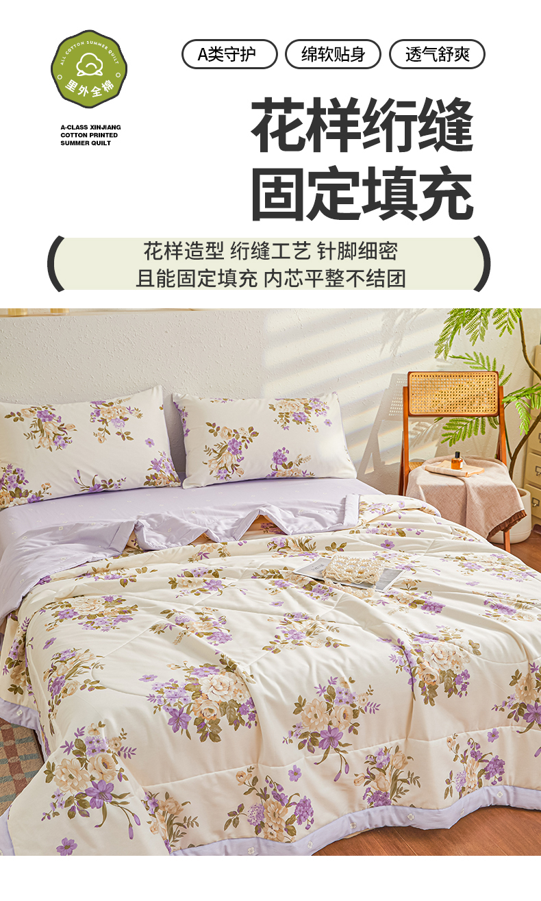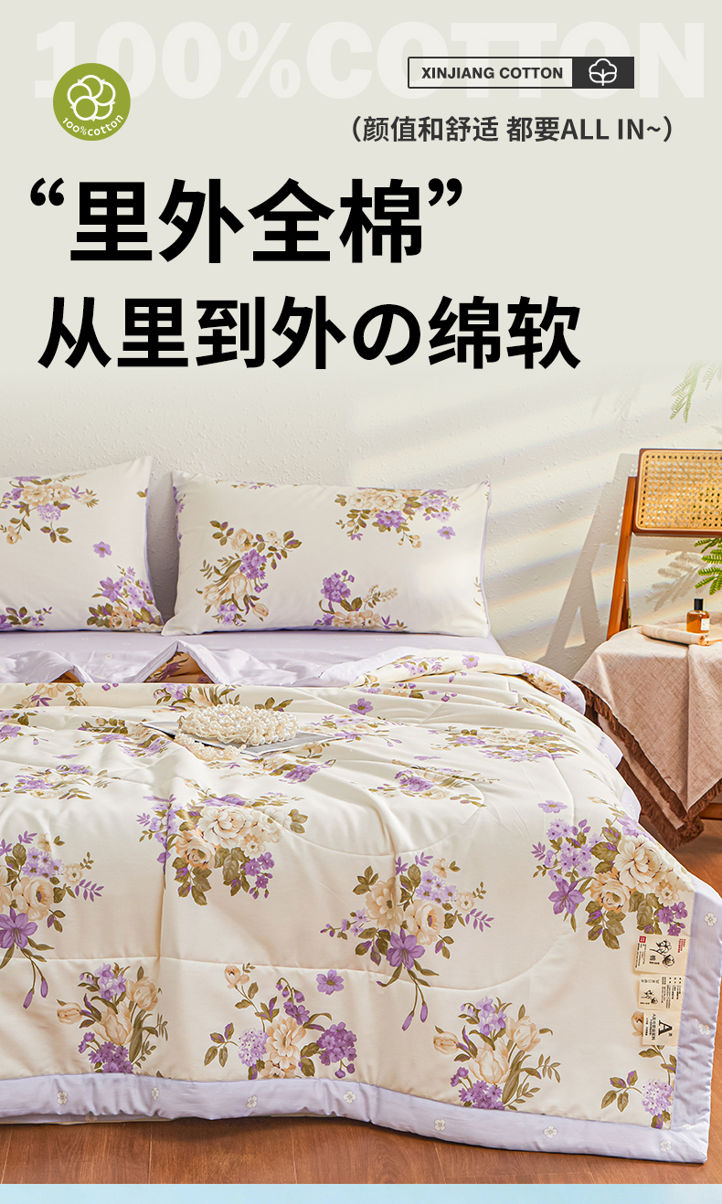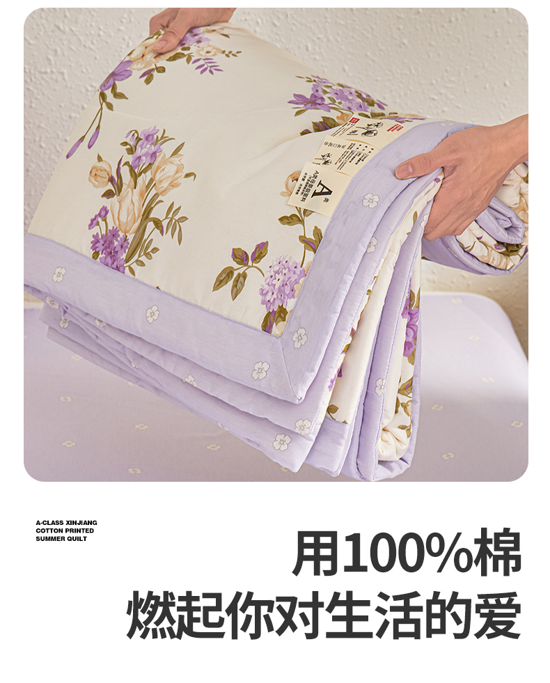 • 91家纺网 家纺一手货源 找家纺 小禹仔家纺 2026新款A类里外全棉印花棉花夏被 花紫悦颜