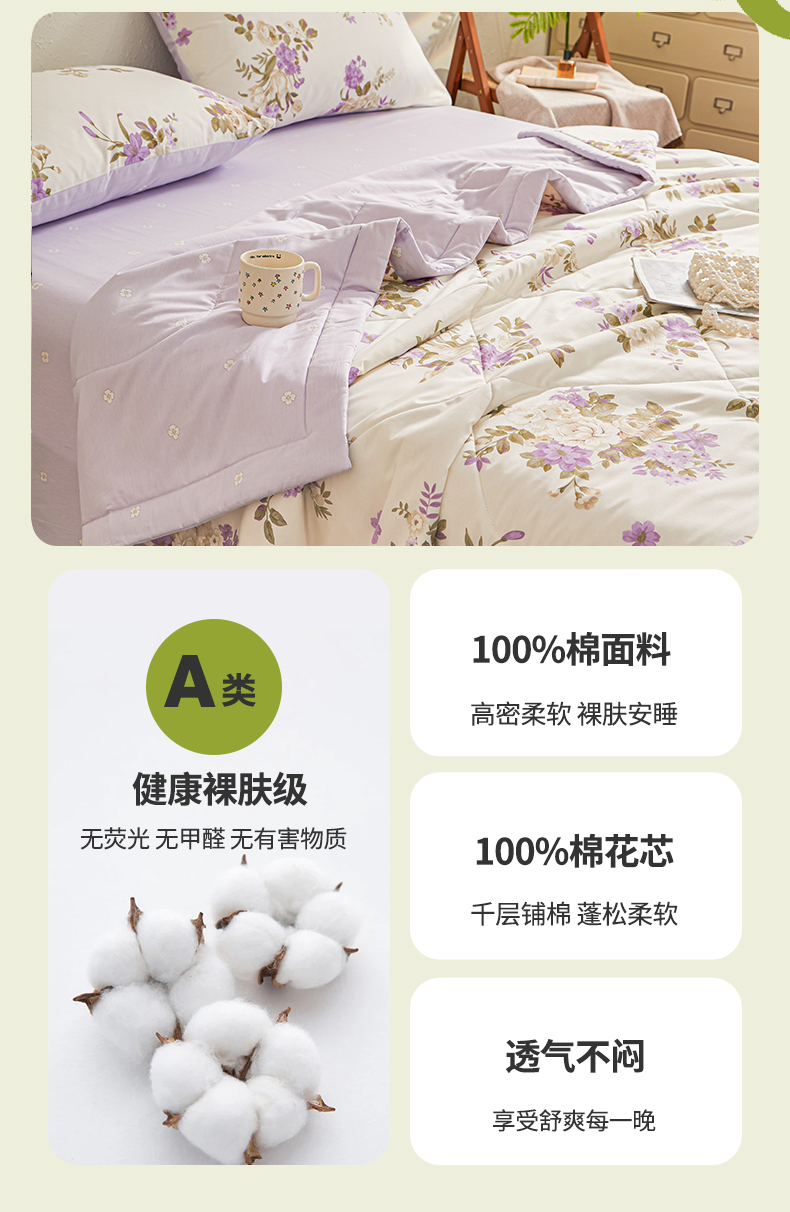 小禹仔家纺 2026新款A类里外全棉印花棉花夏被 花紫悦颜