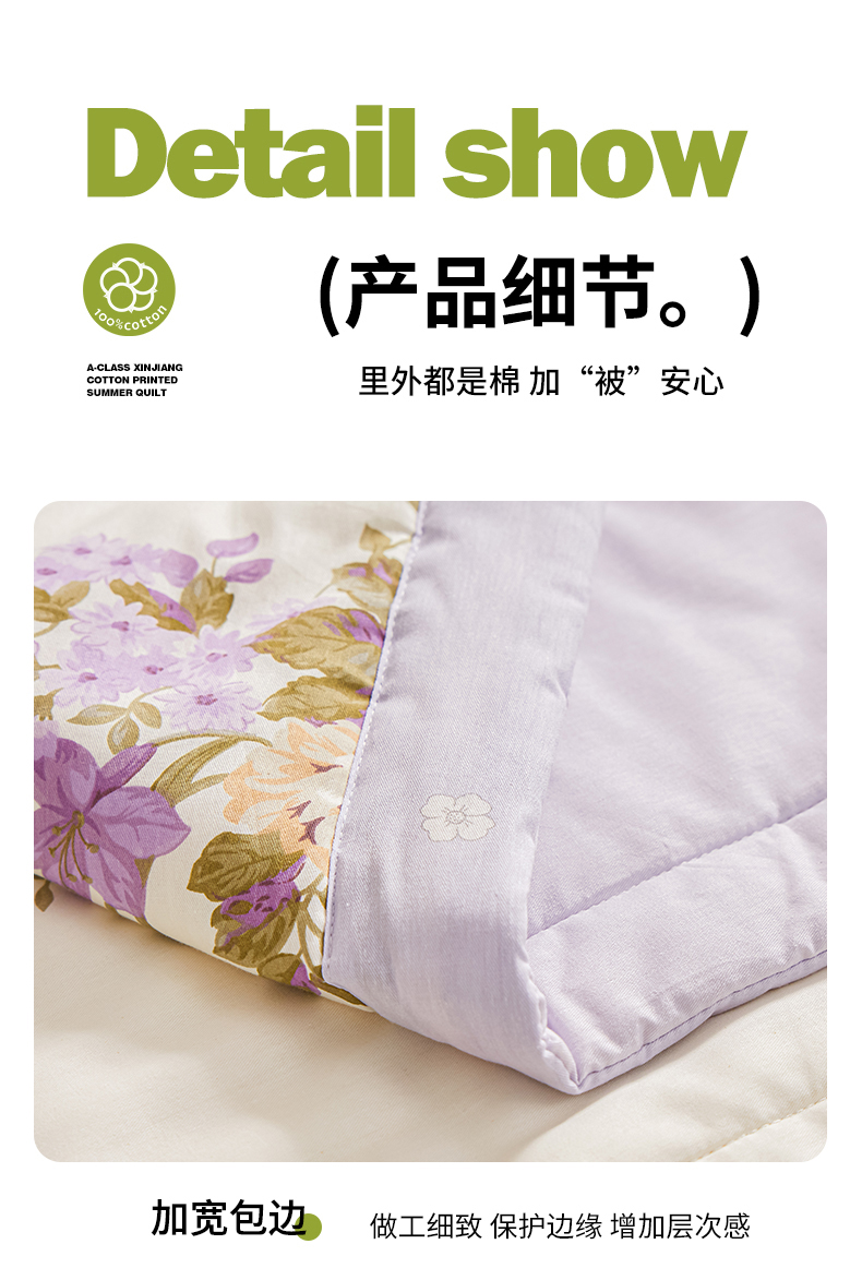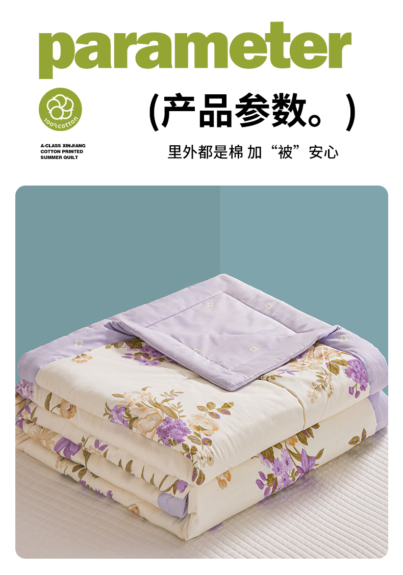 当前位置: 91家纺网 > 商品网购 > 被子 > 夏被 > 小禹仔家纺 2026新款A类里外全棉印花棉花夏被 花紫悦颜