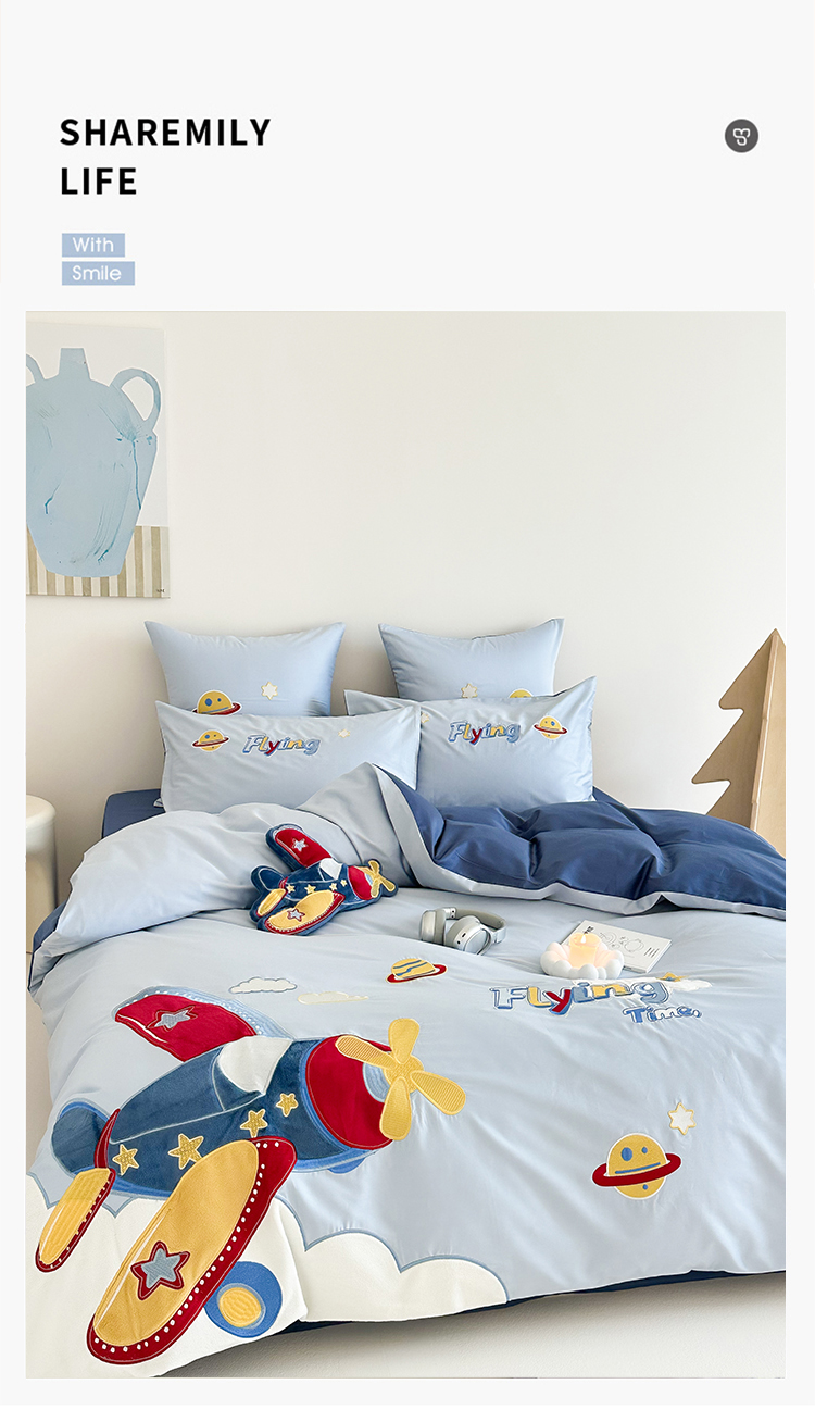 (总)西西家居 2026新款100S长绒棉全棉纯棉四件套-飞行日记