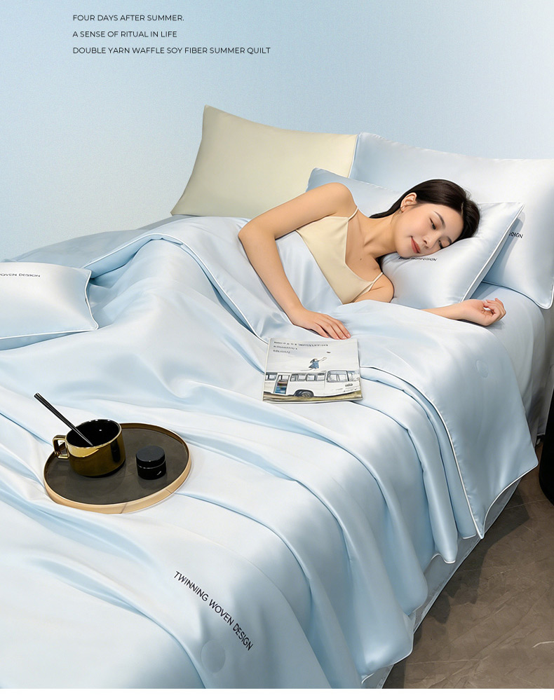 • 91家纺网 家纺一手货源 找家纺 招财星家纺 2026新款可水洗真丝被夏天空调被单人夏凉被冰丝夏被被子双人薄被(带质检报告买家秀) 丝语-水蓝