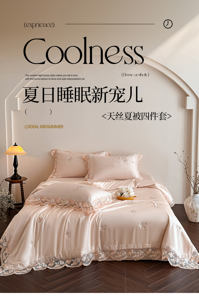 当前位置: 91家纺网 > 商品网购 > 床品套件 > 四件套 > 夏被四件套 > 爱家(原缔乐家纺) 2026新款天丝夏被四件套-轻梦 轻梦-公主粉