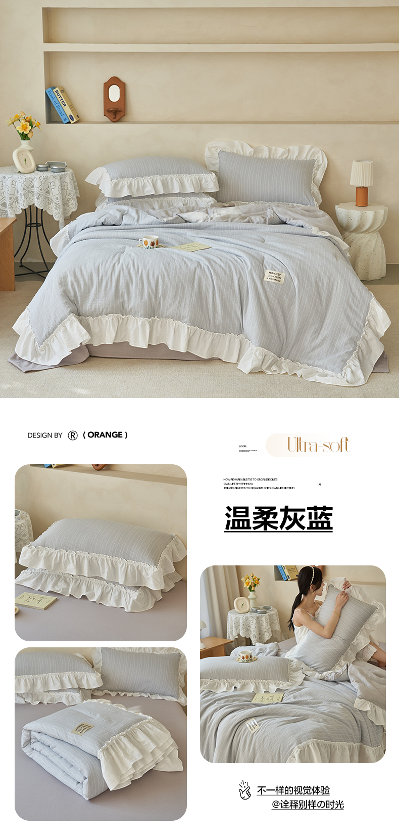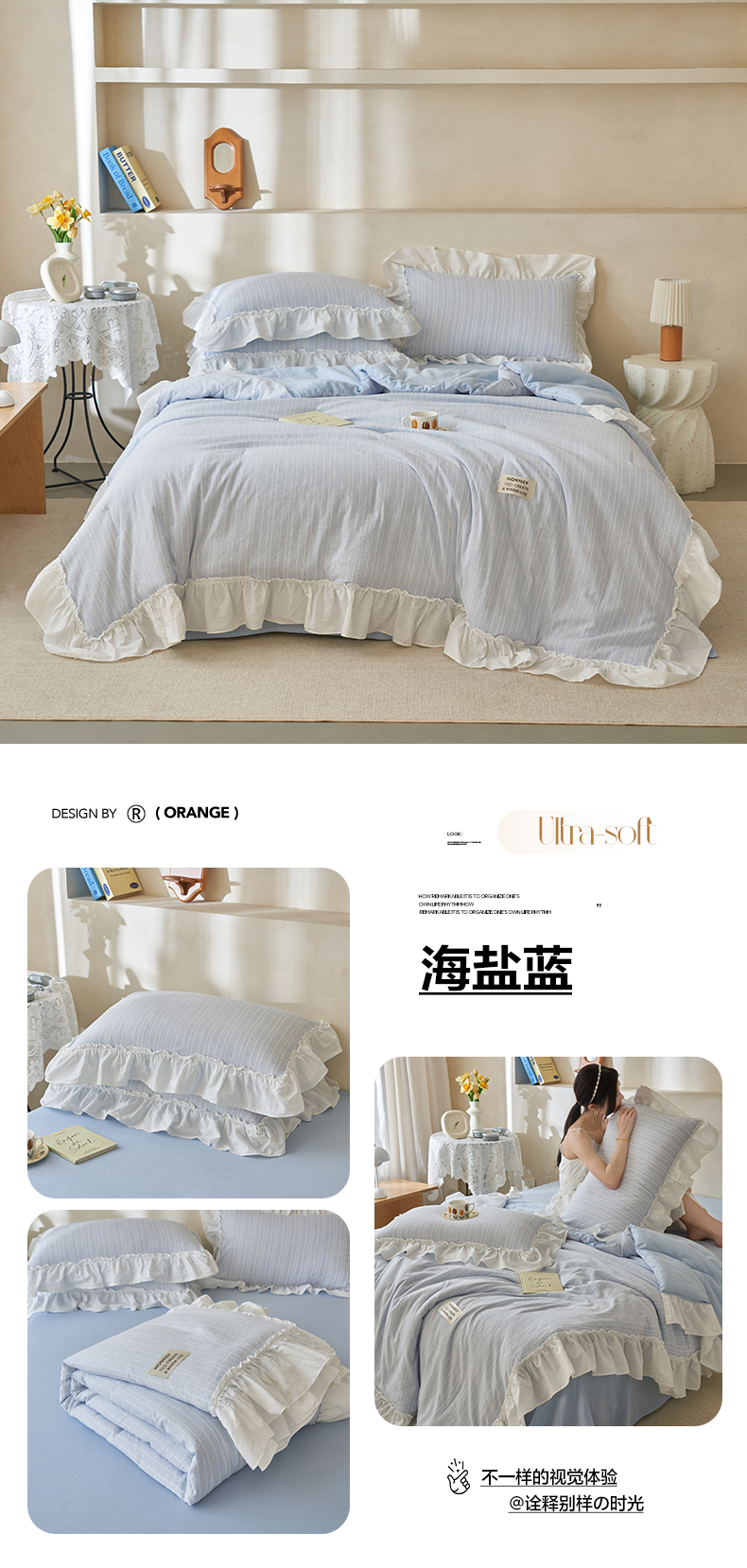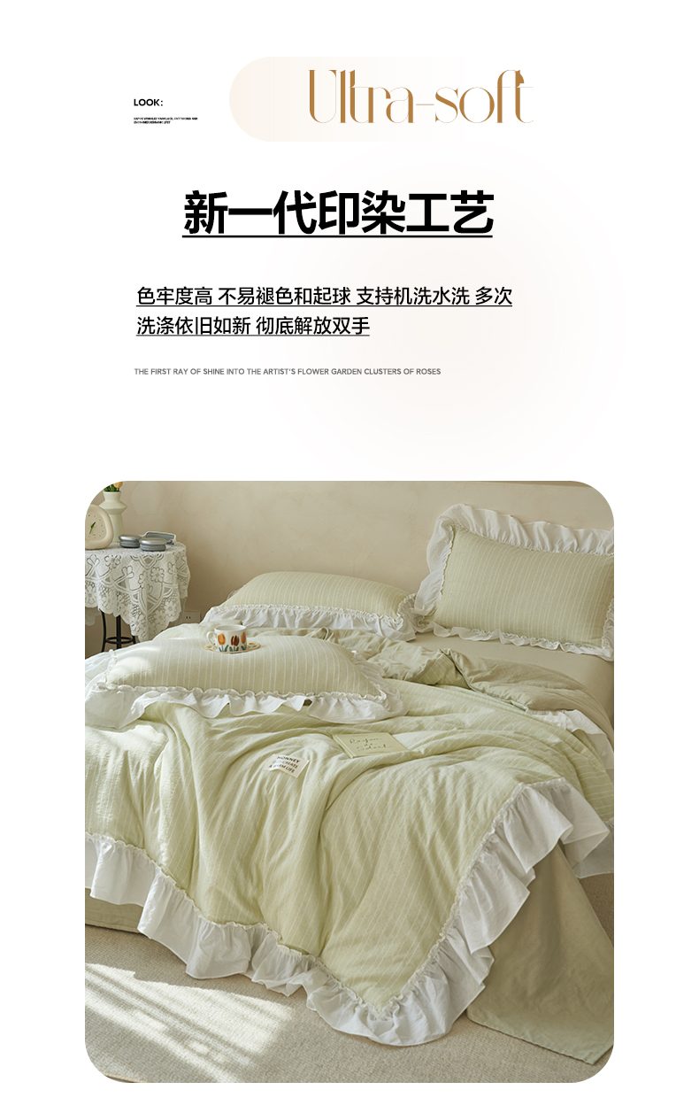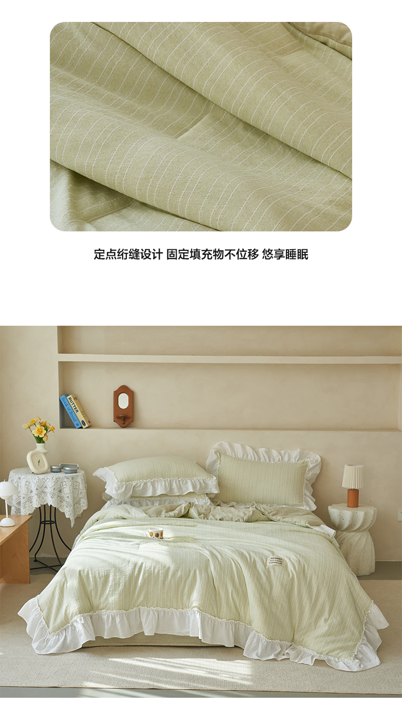 当前位置: 91家纺网 > 商品网购 > 床品套件 > 四件套 > 夏被四件套 > 晨曦家纺 2026新款荷叶花边泡芙纱提花夏凉被四件套可水洗棉夏被四件套少女风 抹茶奶绿