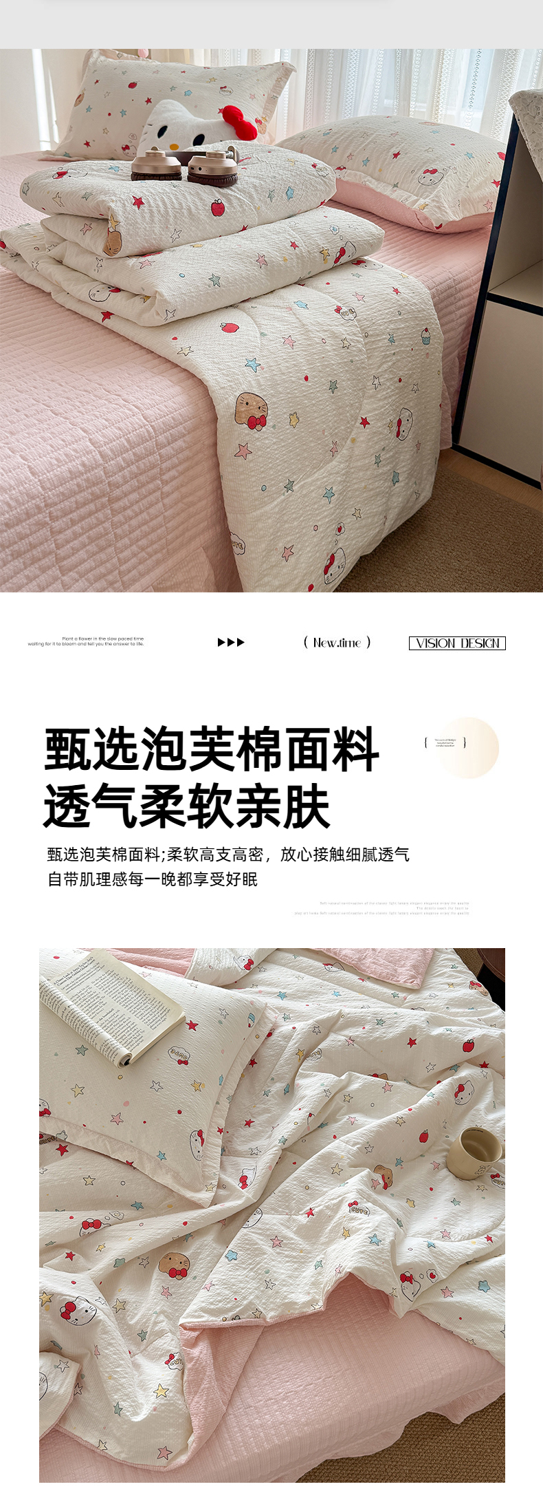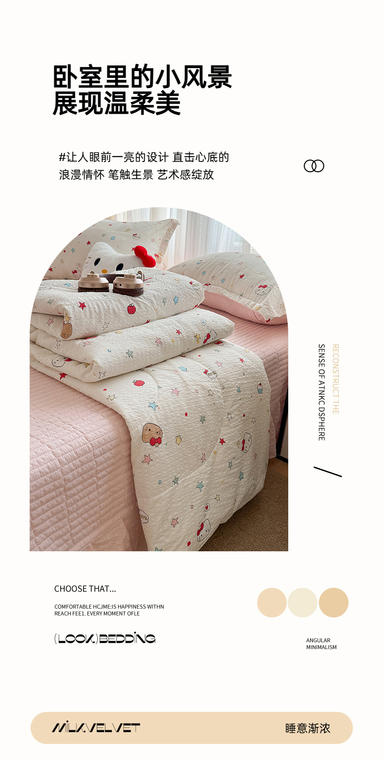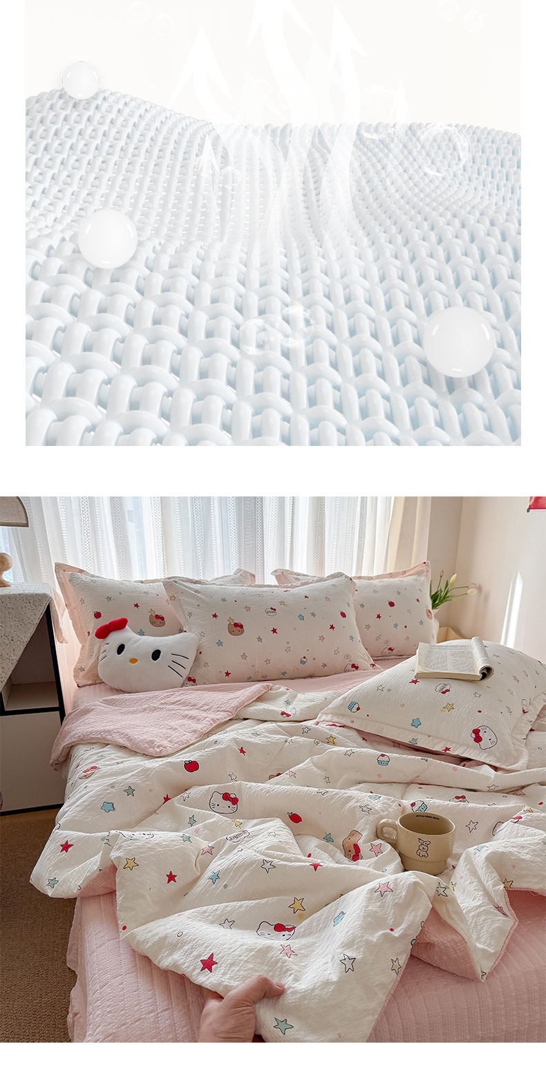 商品名称:梵希雅 2026新款云感泡芙棉泡芙纱床盖夏被四件套 星芒凯蒂