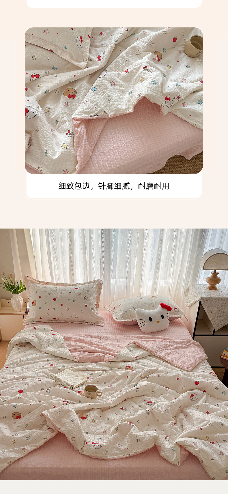 (总)梵希雅 2026新款三角针泡芙纱夏被四件套-实拍图,波点,粉玫瑰,花镜人偶,可可小猫条,兰爱心,蕾丝花匣,栗色木马纹,描线猫,暖橘枝,芊泥花束,浅川纹,柔诗意,甜桃心,甜心木马卷,小猫粉,星芒凯蒂,星星人,只闻花香,紫雾花蝶