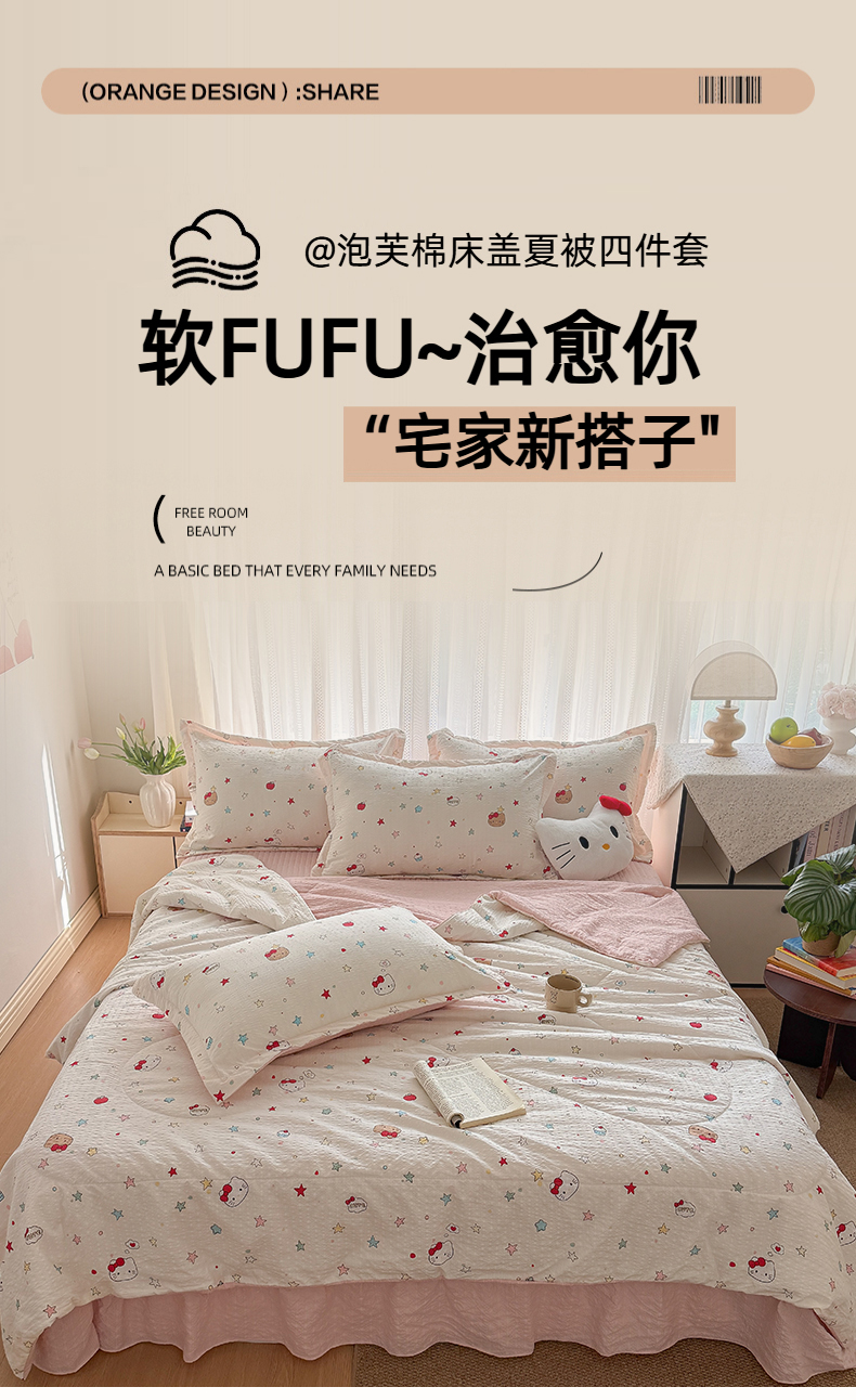 梵希雅 2026新款云感泡芙棉泡芙纱床盖夏被四件套 星芒凯蒂