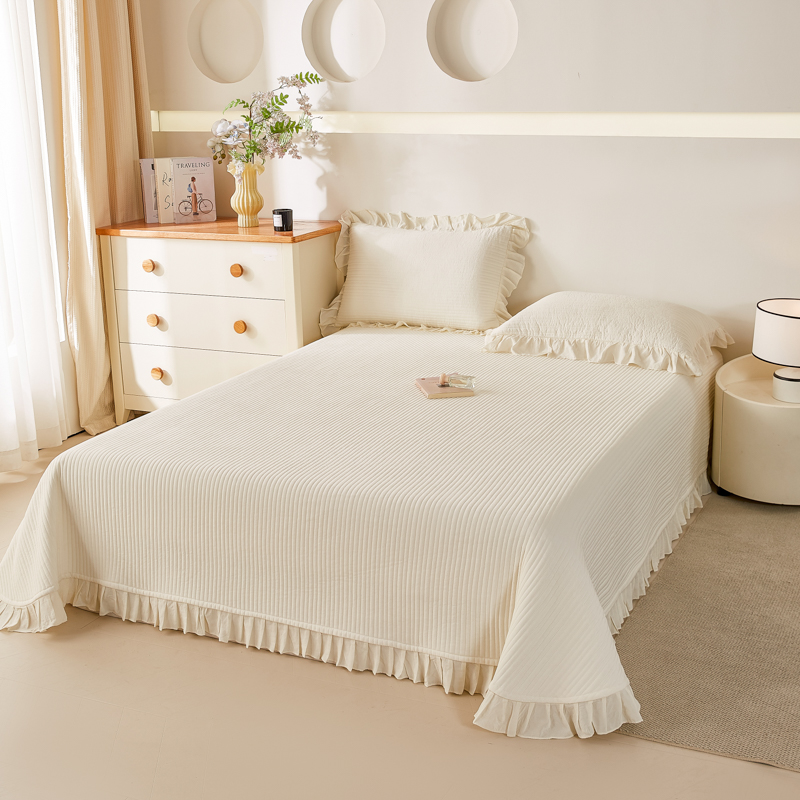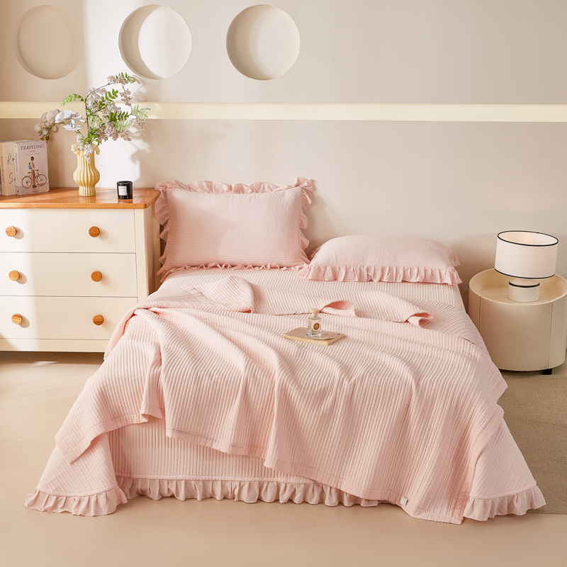 玖玖爱家纺 2026新款高端A类夹棉水洗母婴级莱赛尔天丝床盖裙边凉席三件套 奶霜粉