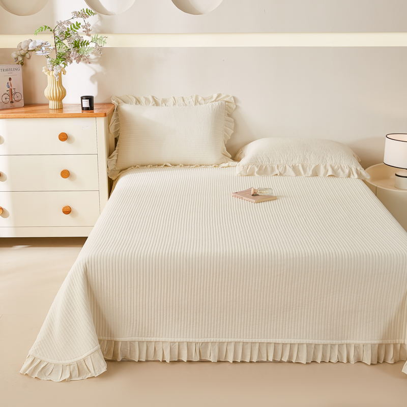 商品名称:玖玖爱家纺 2026新款高端A类夹棉水洗母婴级莱赛尔天丝床盖裙边凉席三件套 奶霜粉