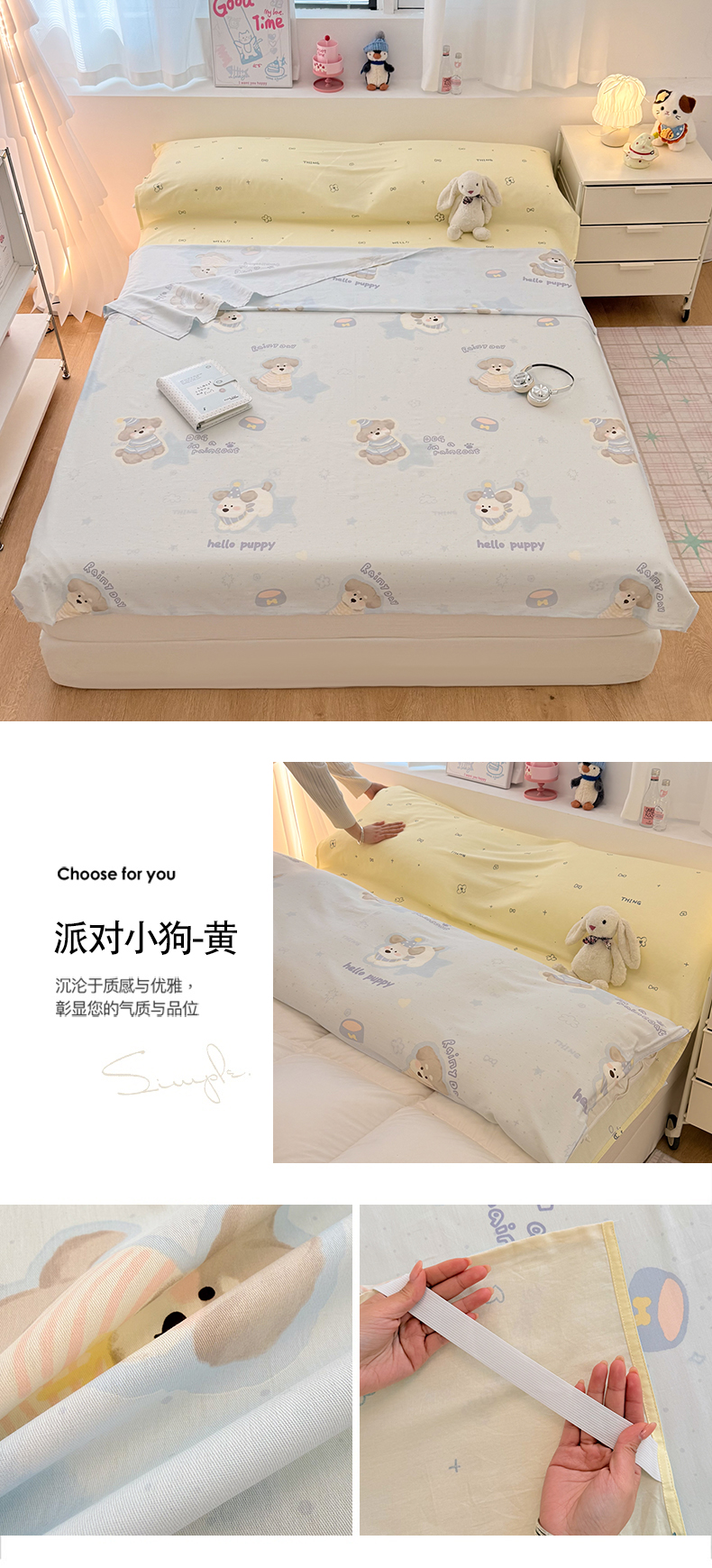 简宜2023新款13070纯棉全棉40支斜纹卡通小清新学生三件套四件套,花园兔,紫葡仙子,倩影粉,hello 萌熊,嘟嘟小车,简笔画,开心小黄鸭,梦幻城堡,浓情爱意