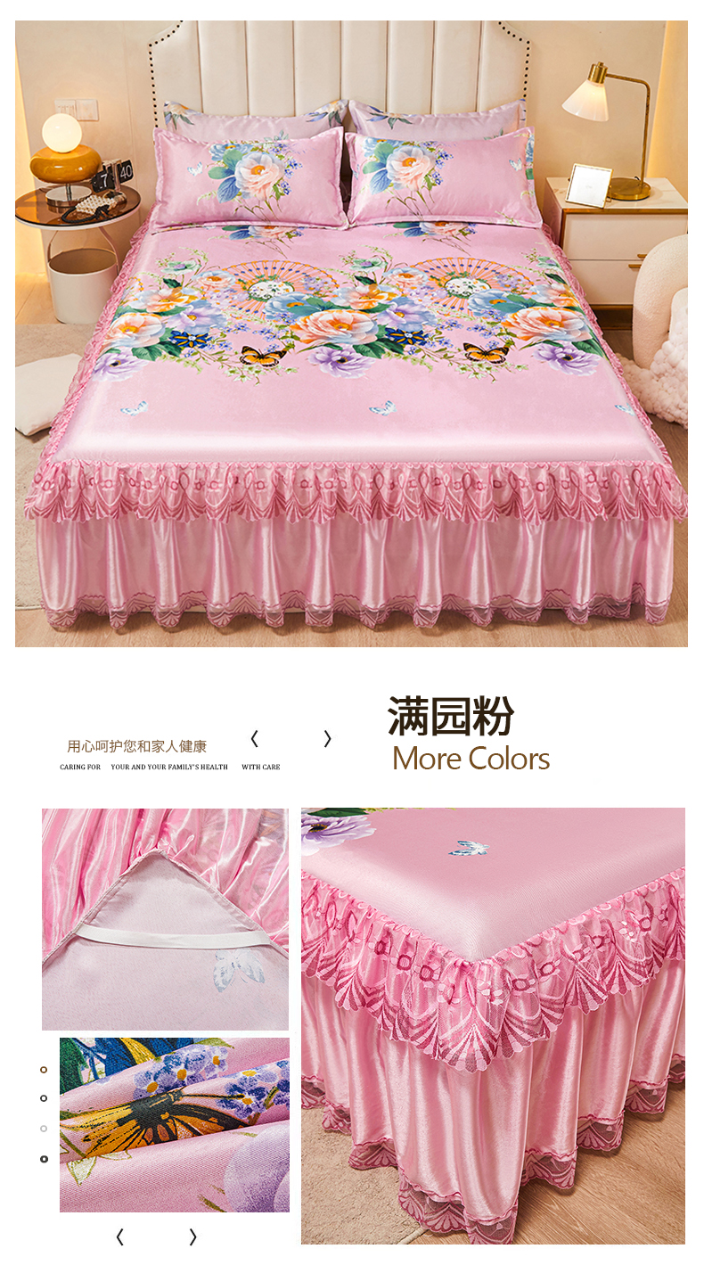 (总)妖妖家纺 2026新款双层蕾丝床裙夏凉冰丝席,满园粉,暴力熊蓝,贝琪,锦绣风尚蓝,拉布布蓝,满园蓝,欧丽雅,欧式风情,软萌熊宝,水果派对,似水流年咖,心动粉,烟雨灰,烟雨绿