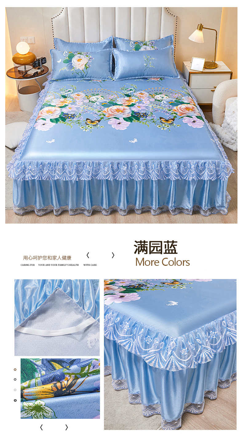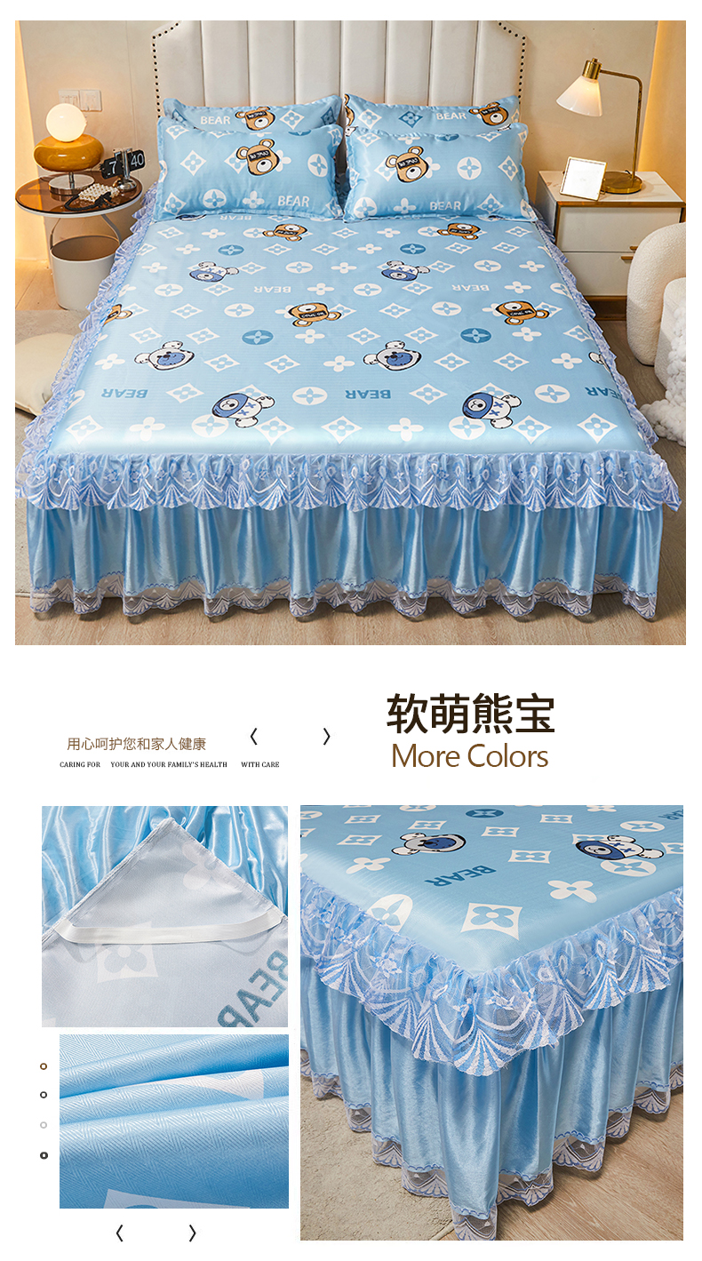 (总)妖妖家纺 2026新款双层蕾丝床裙夏凉冰丝席,满园粉,暴力熊蓝,贝琪,锦绣风尚蓝,拉布布蓝,满园蓝,欧丽雅,欧式风情,软萌熊宝,水果派对,似水流年咖,心动粉,烟雨灰,烟雨绿