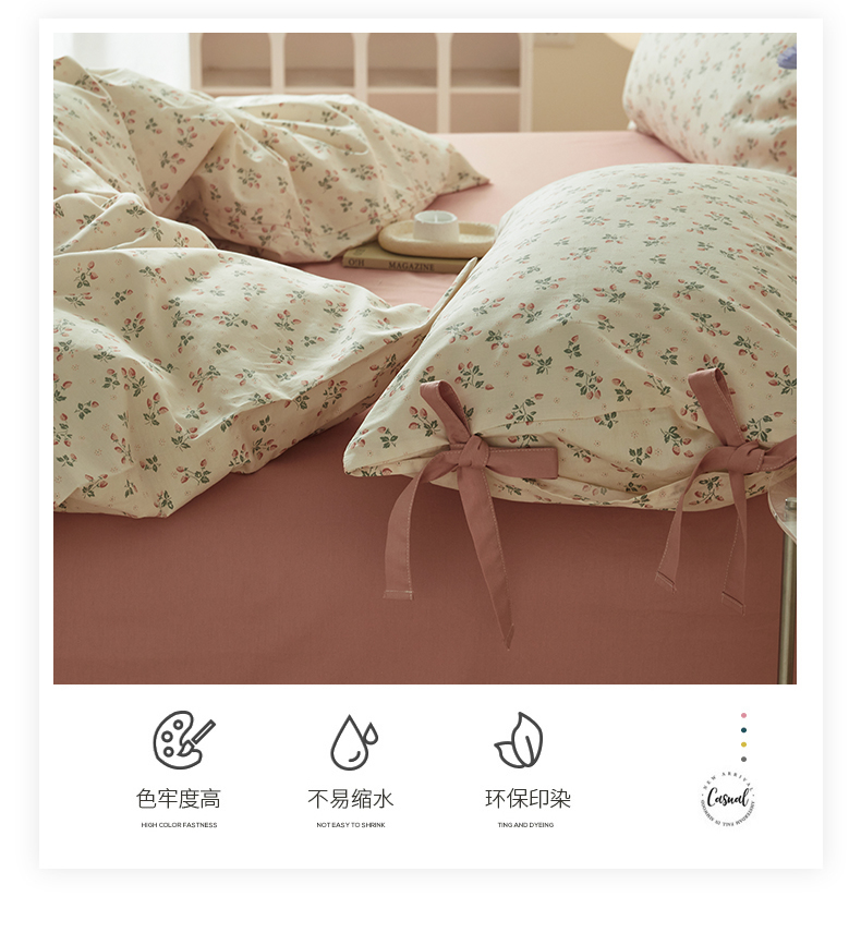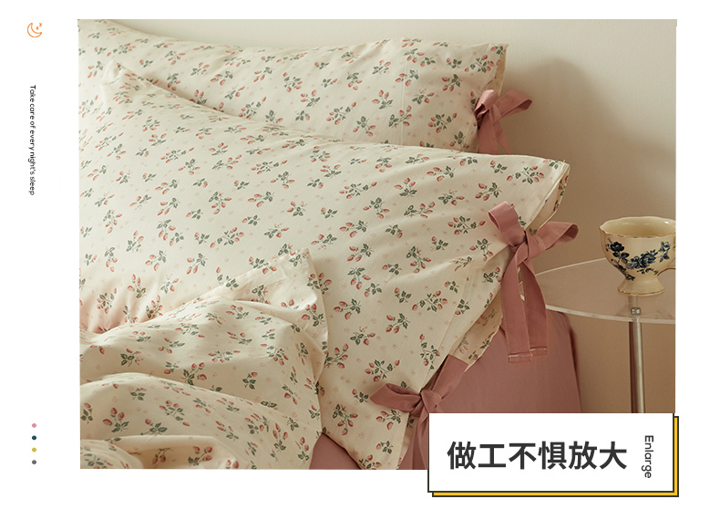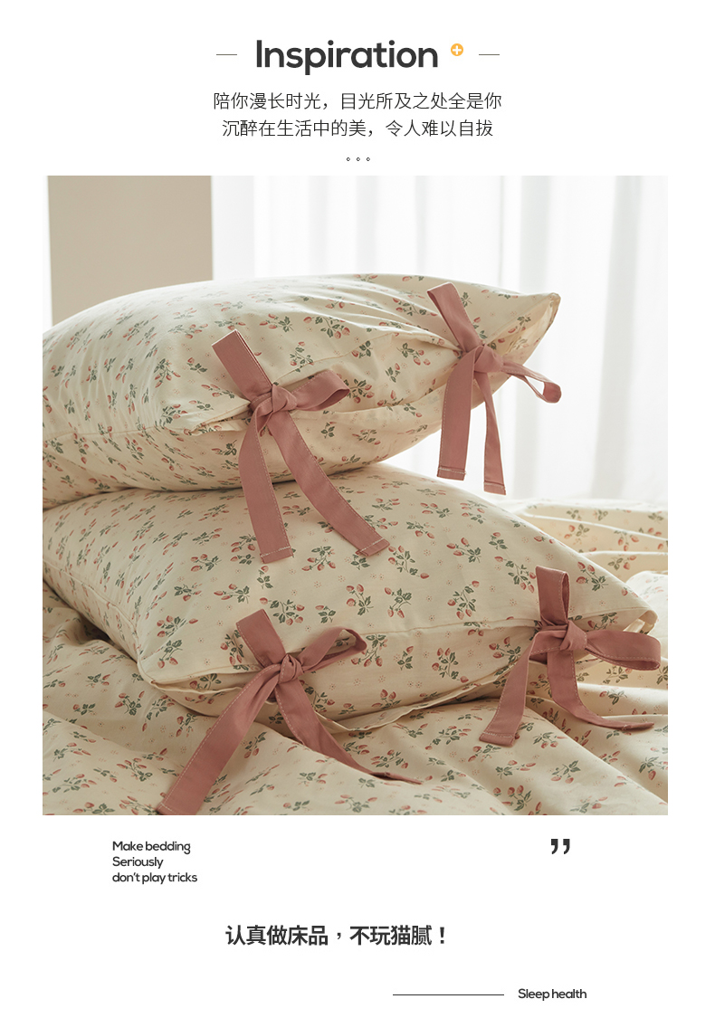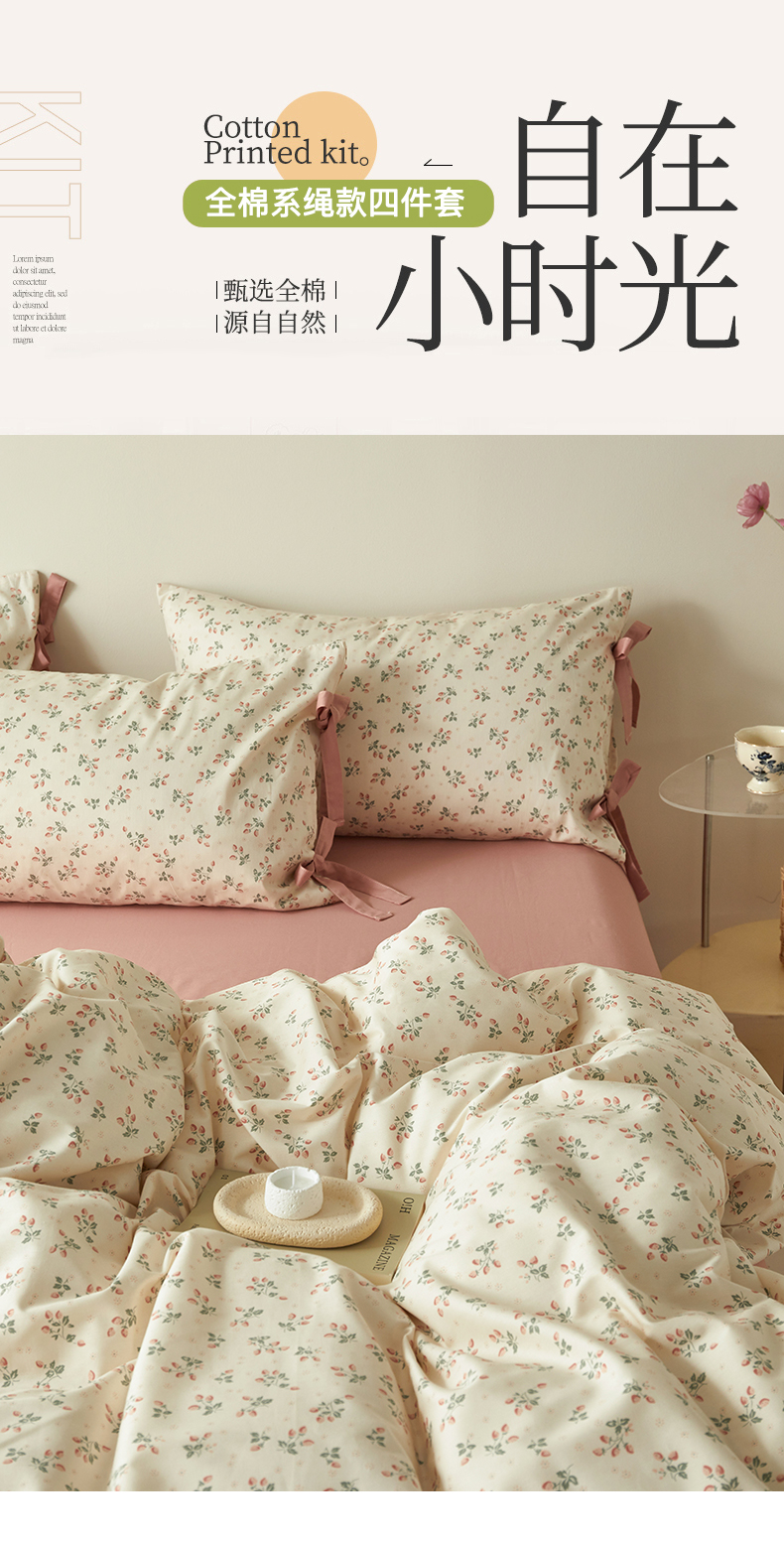 (总)绫韵家纺 2026春夏新款13372全棉ins小碎花纯棉田园风床单床笠四件套系绳蝴蝶结系列,贝贝利亚,沉香,丹恒,花田喜事