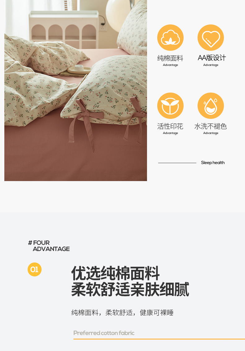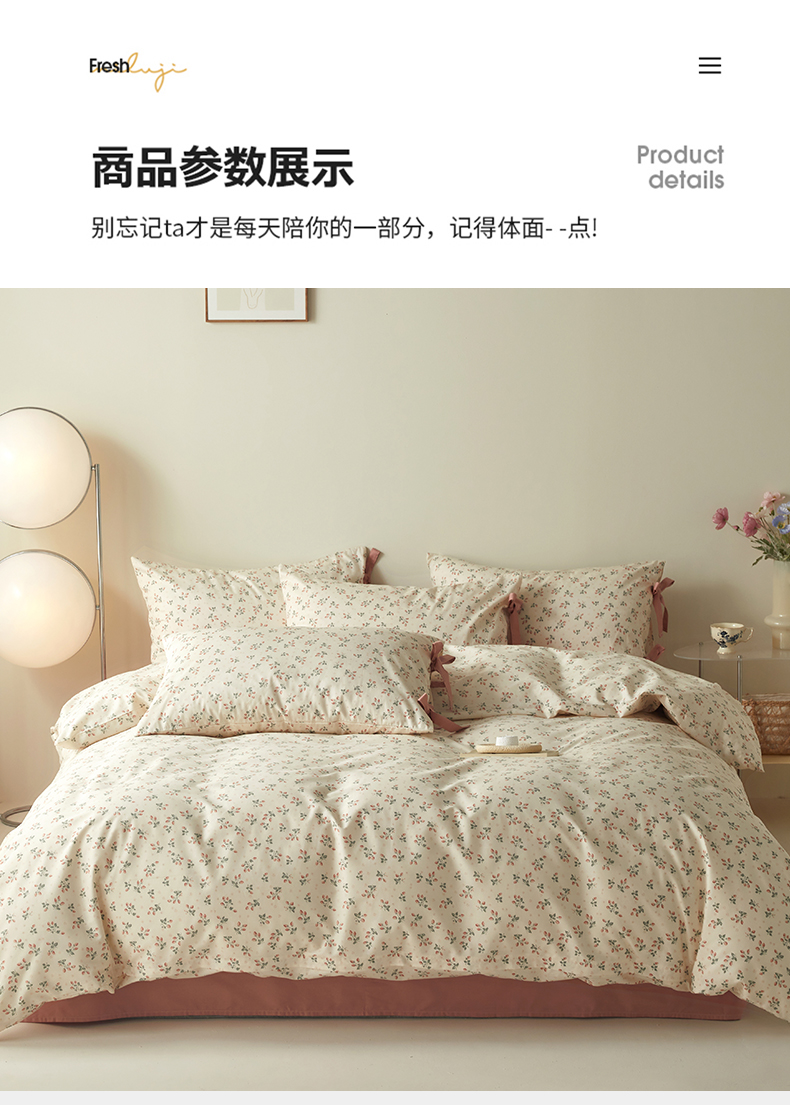 (总)绫韵家纺 2026新款全棉ins小碎花13372纯棉田园风简约四件套,陌上秋,轻语·米,桃点点,条纹小猫,兔趣花园,乡村爱情,星星花,伊涅芙