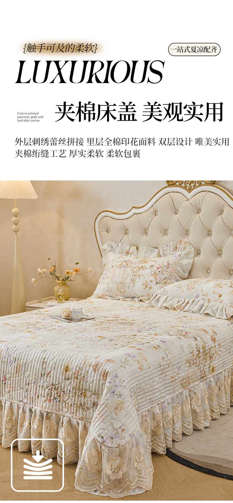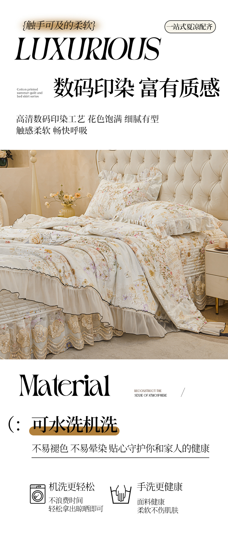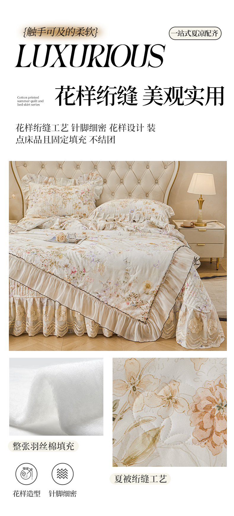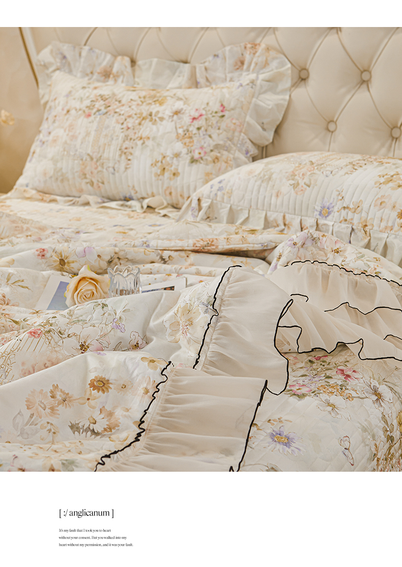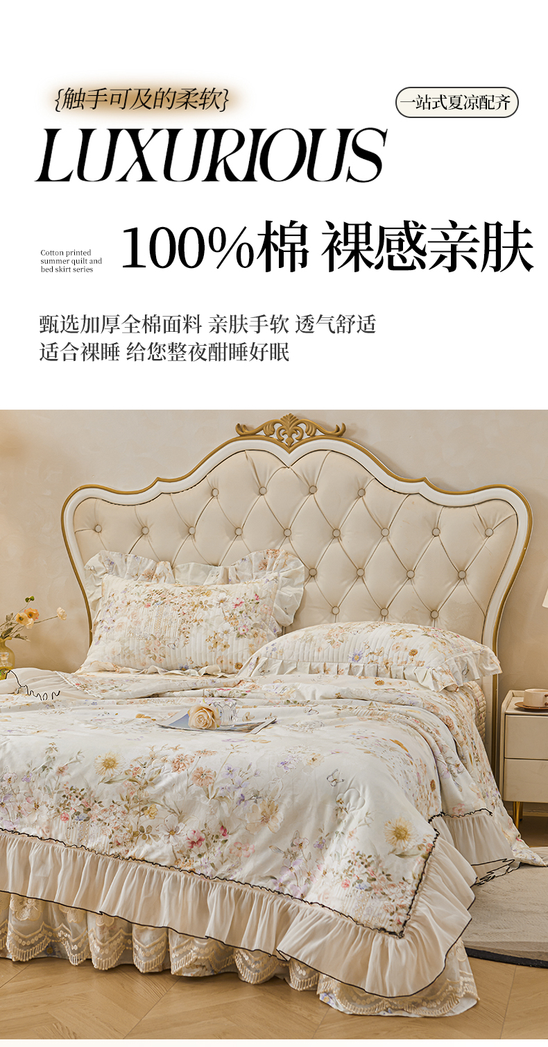 (总)宜凡家纺 2025新款全棉数码印花床裙三件套系列一,静若幽兰,浮云织梦,梦幻花园,陌上花开