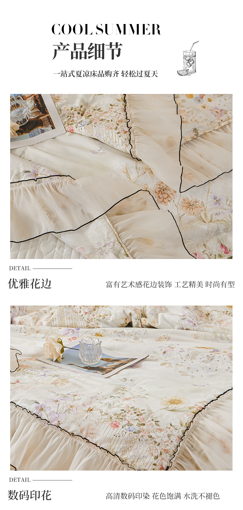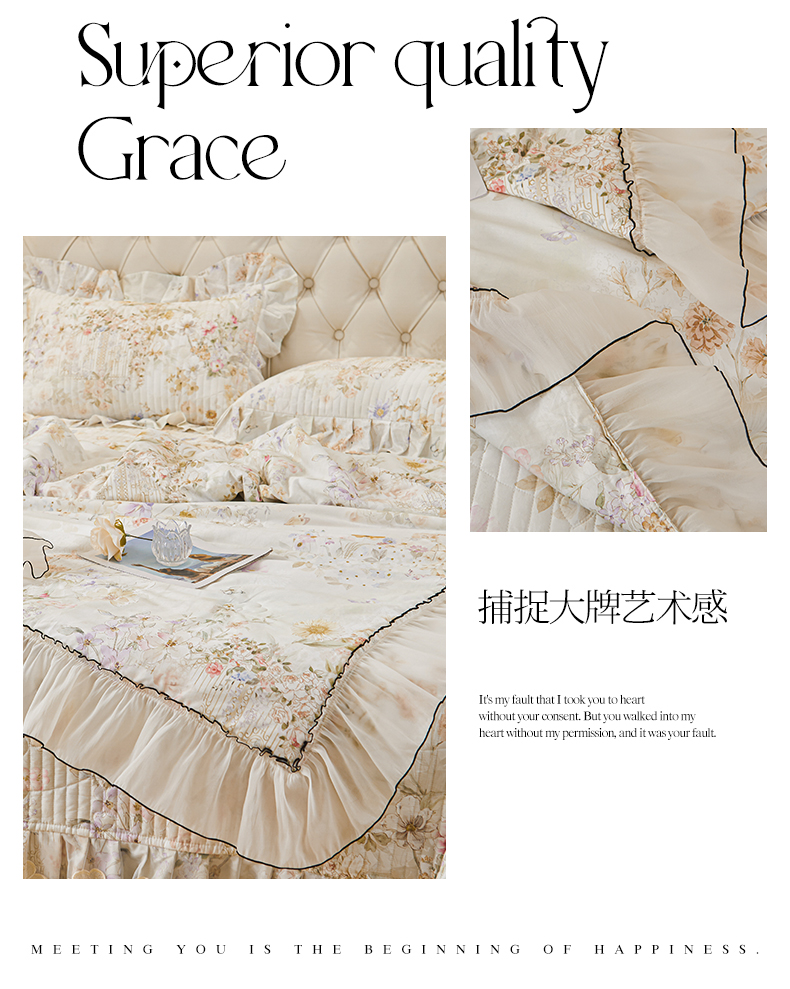 (总)宜凡家纺 2025新款全棉数码印花床裙四件套系列一,静若幽兰,浮云织梦,梦幻花园,陌上花开