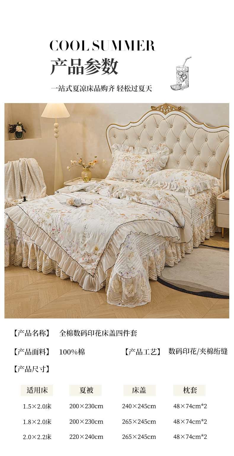 商品名称:宜凡家纺 2026新款全棉数码印花夏被床盖四件套②号系列 春旭