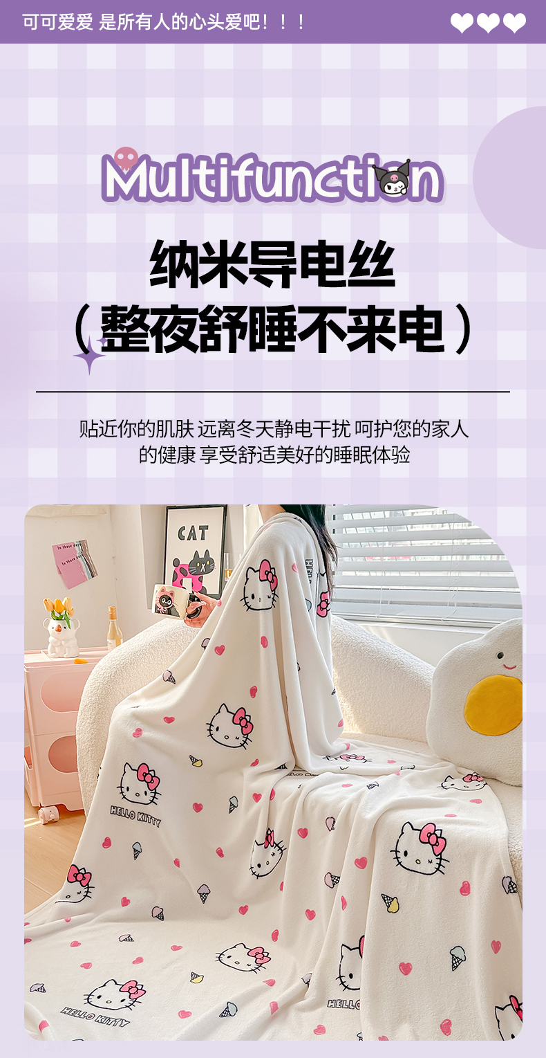 商品名称:博雅 2026新款三丽鸥小版牛奶绒盖毯午睡毯 小版-甜筒KT