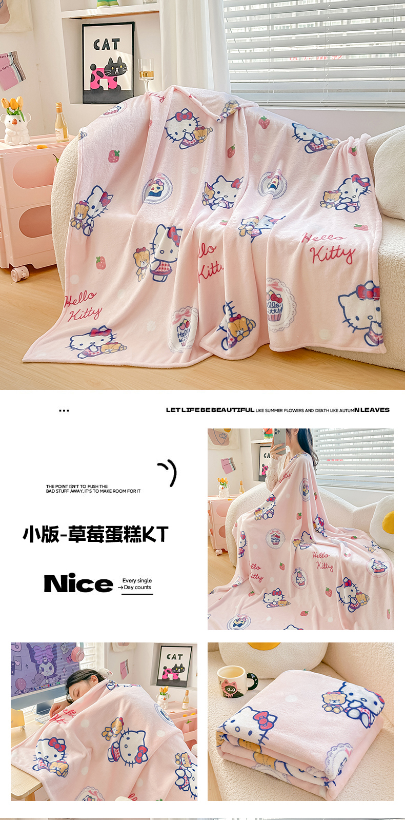 (总)博雅 2026新款三丽鸥小版牛奶绒盖毯午睡毯,小版-甜筒KT,小版-草莓蛋糕KT,小版-高贵KT,小版-蝴蝶结KT,小版-蓝格布丁狗,小版-满版玉桂狗,小版-美妆KT猫,小版-下午茶美乐蒂
