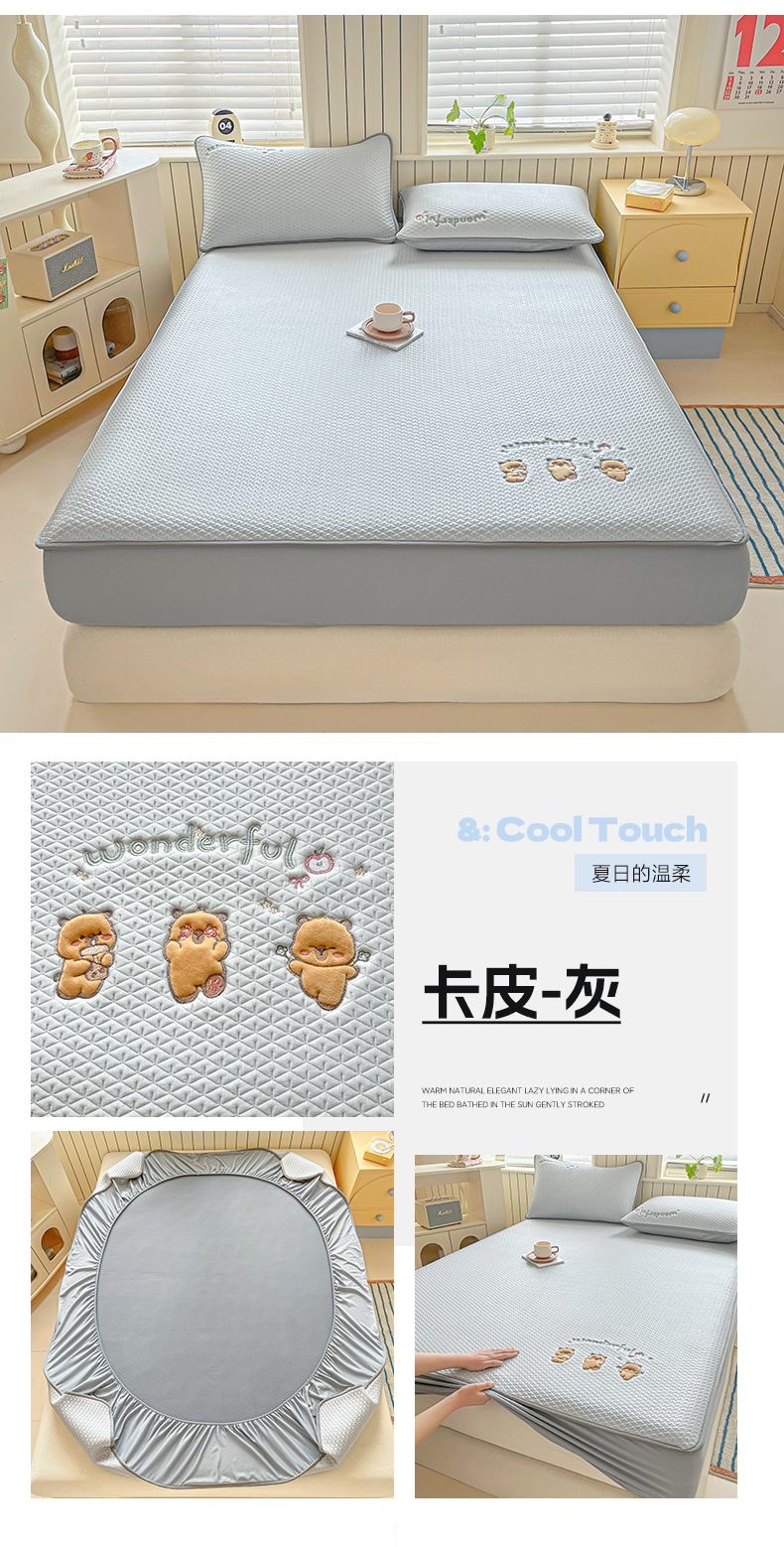 当前位置: 91家纺网 > 商品网购 > 床品套件 > 四件套 > 夏被四件套 > 欧邦 2026新款PE中分子刺绣复合床笠款冰豆豆夏被套件-卡皮巴拉系列 卡皮-灰