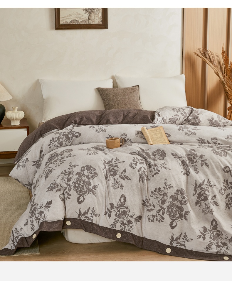 商品名称:梦舒羽 2026新款A类原麻纽扣加厚被套床单宿舍双人床仿亚麻被子 古堡花园-咖