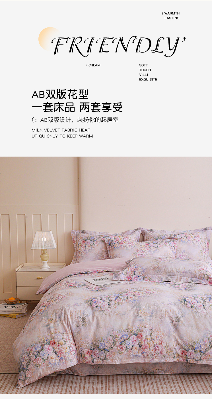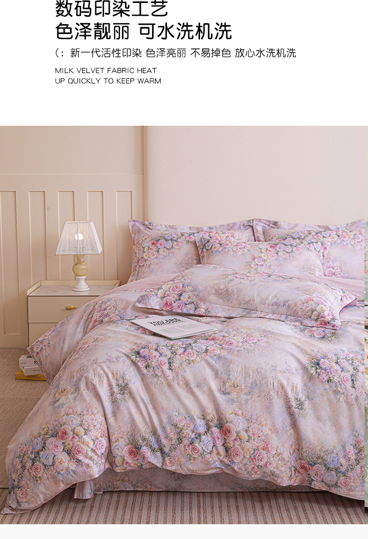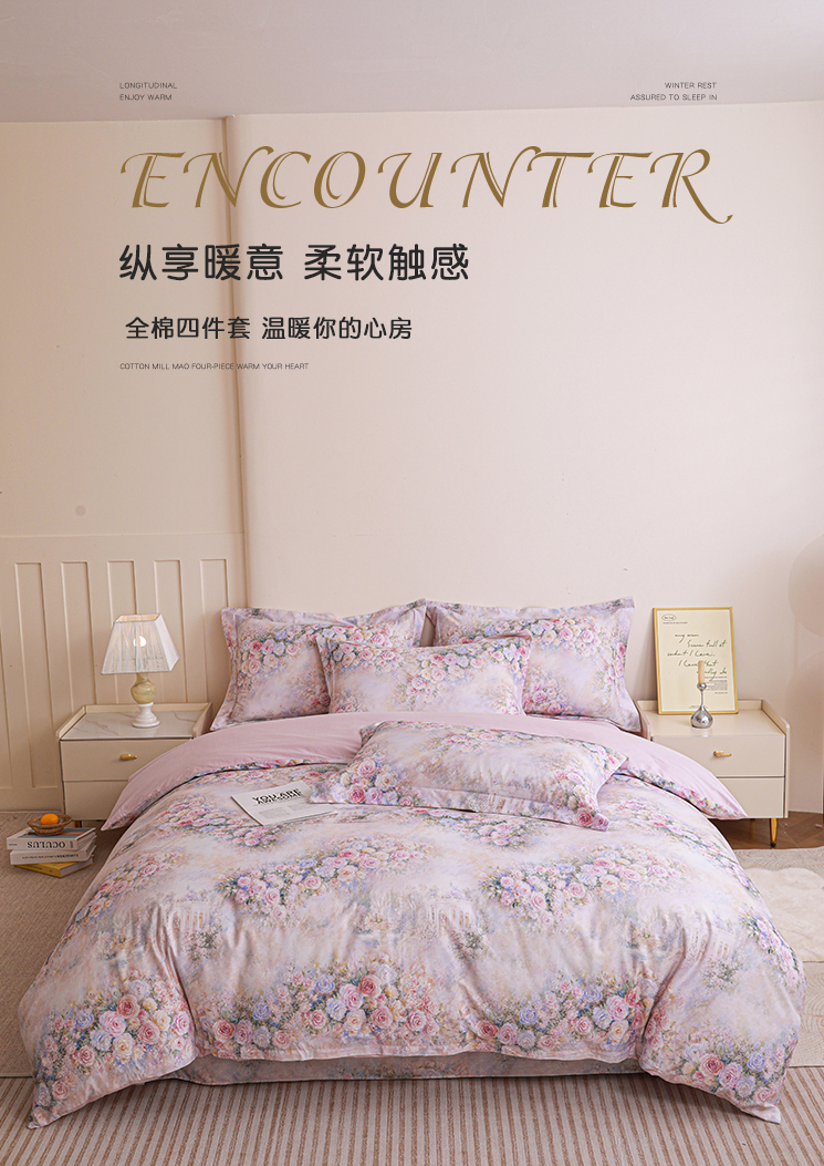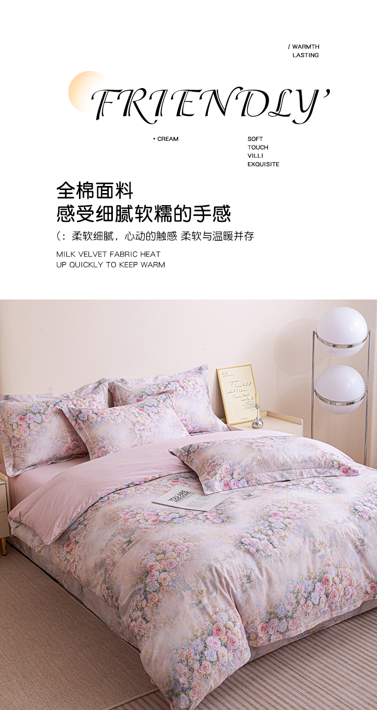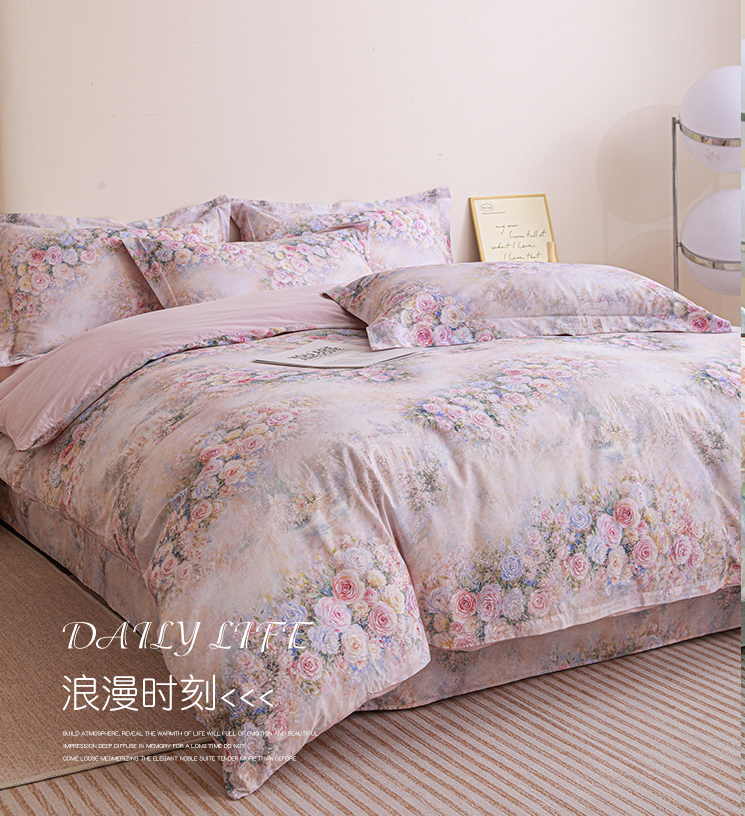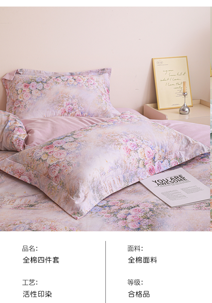 当前位置: 91家纺网 > 商品网购 > 床品套件 > 四件套 > 全棉普通四件套 > 朵希曼 2026新款全棉纯棉大版定位13376数码印花系列四件套 花礼-粉