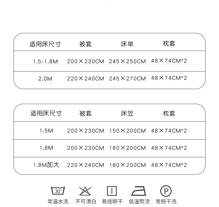 【床笠款】1.8四件套-被套200x230 | ¥155.00 |
