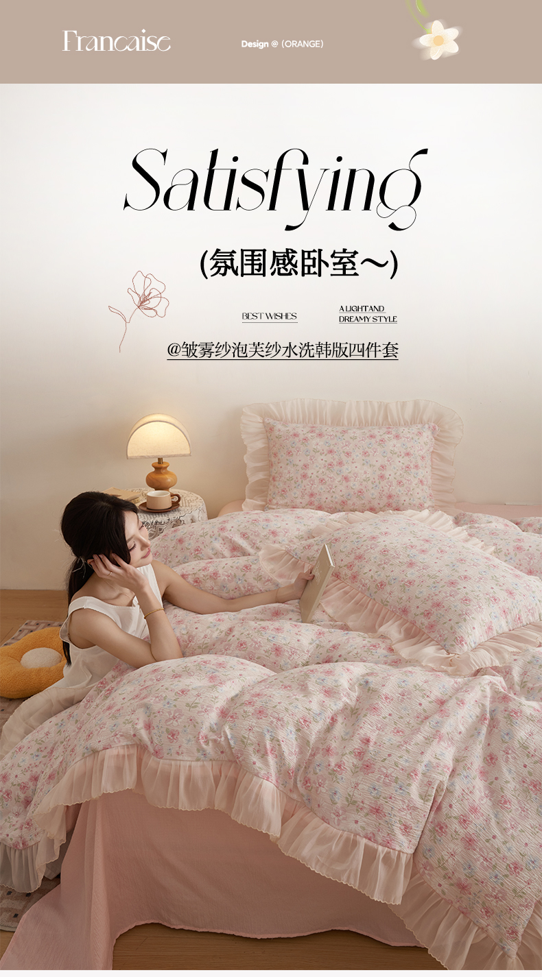 商品名称:(总)晨曦家纺 2026春夏新款皱雾纱泡芙纱水洗少女ins风韩版四件套