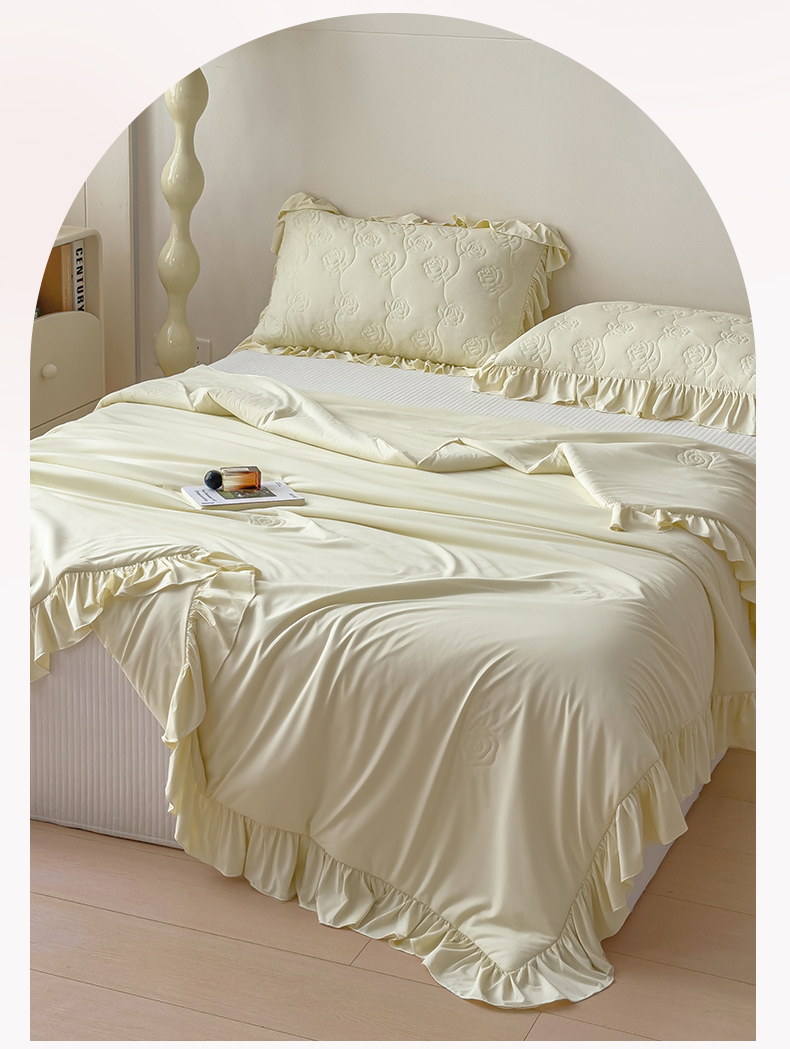 被子 > 夏被 > 雯豆家纺 【10A抗菌】2026新款氨纶凉感丝花边夏被夏凉被夏季冰丝空调被子被芯 氨纶花边夏被-奶黄
