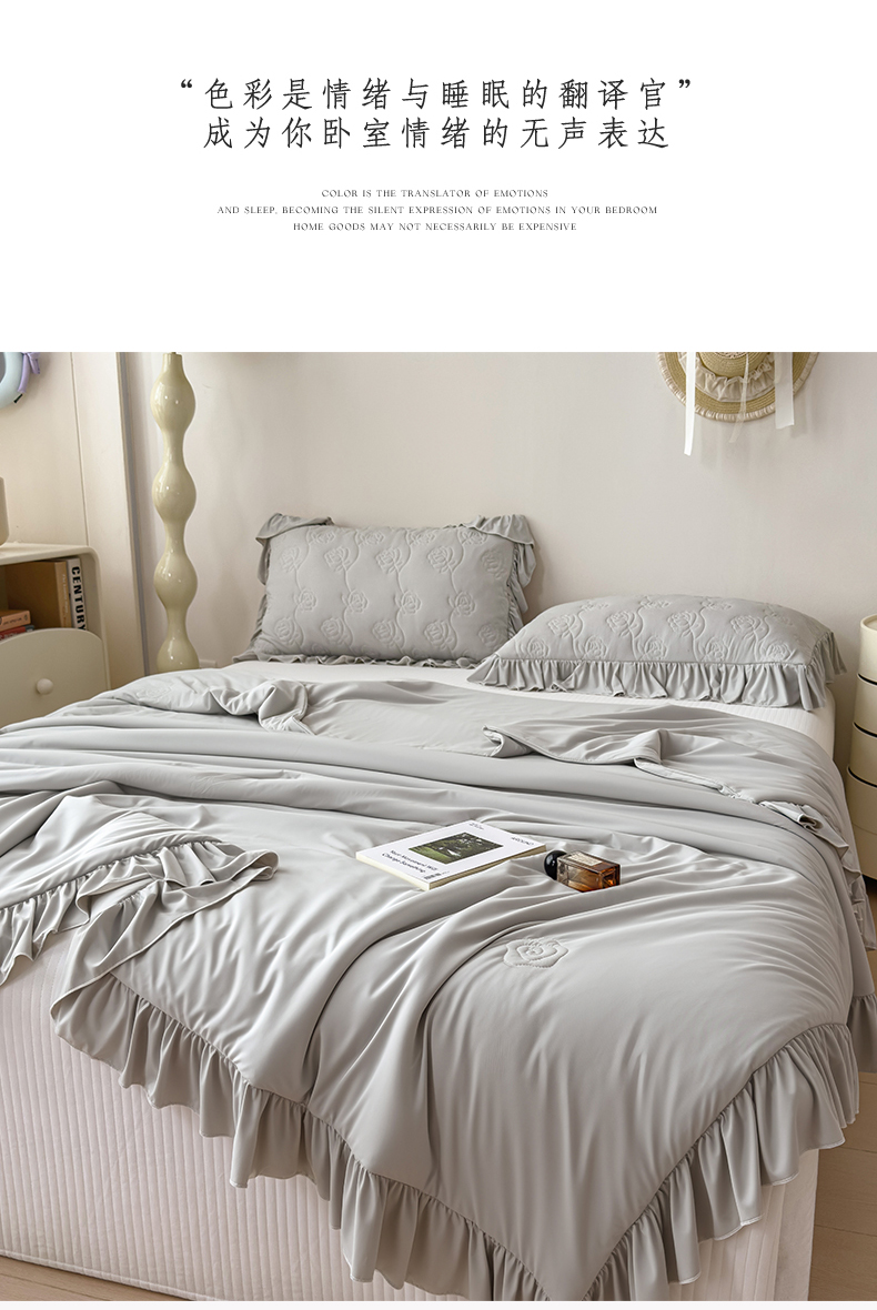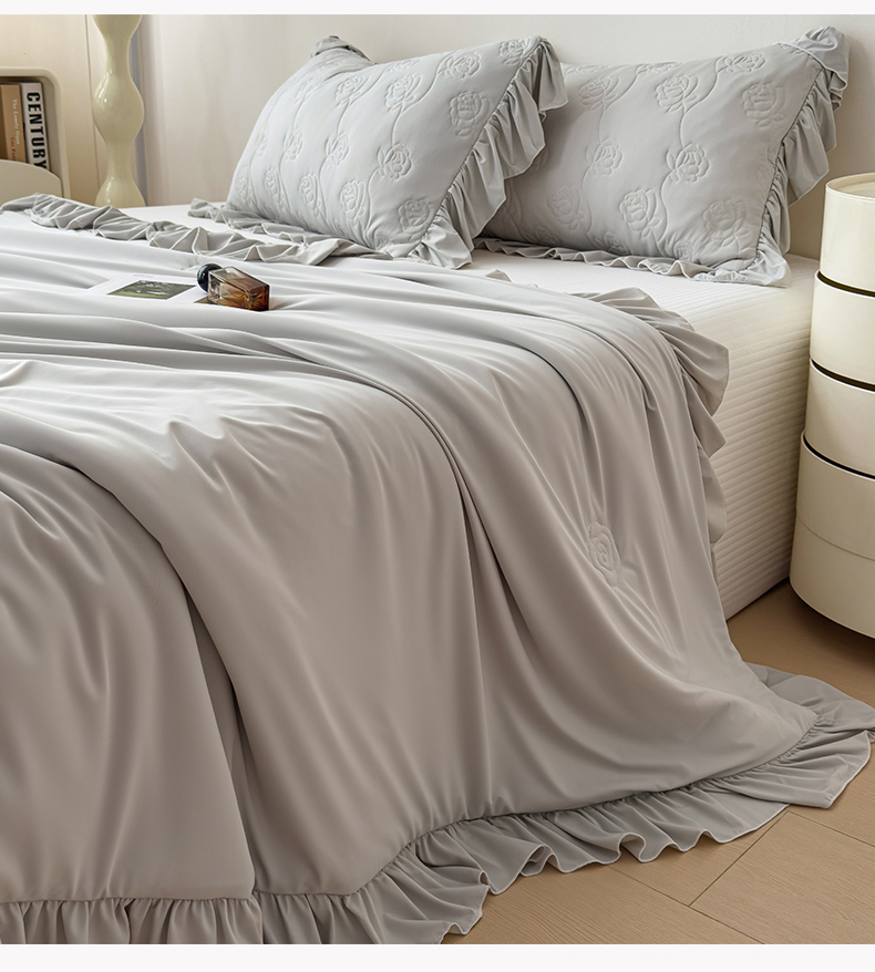 (总)雯豆家纺 【10A抗菌】2026新款氨纶凉感丝花边床裙床盖夏季冰感床罩+花边夏被四件套,氨纶花边床裙-香芋紫,氨纶花边床裙-奶黄,氨纶花边床裙-浅粉,氨纶花边床裙-浅灰,氨纶花边床裙-水蓝,组合