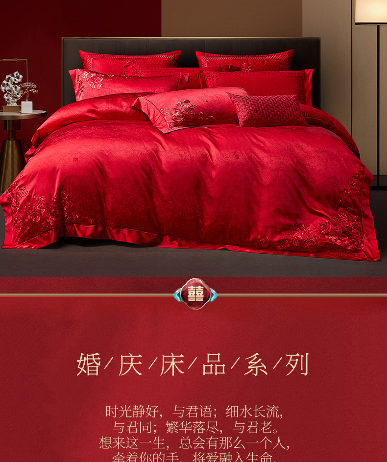 当前位置: 91家纺网 > 商品网购 > 床品套件 > 四件套 > 婚庆四件套 > 蒂爵 2026新款高端绣花婚庆四件套 佳期