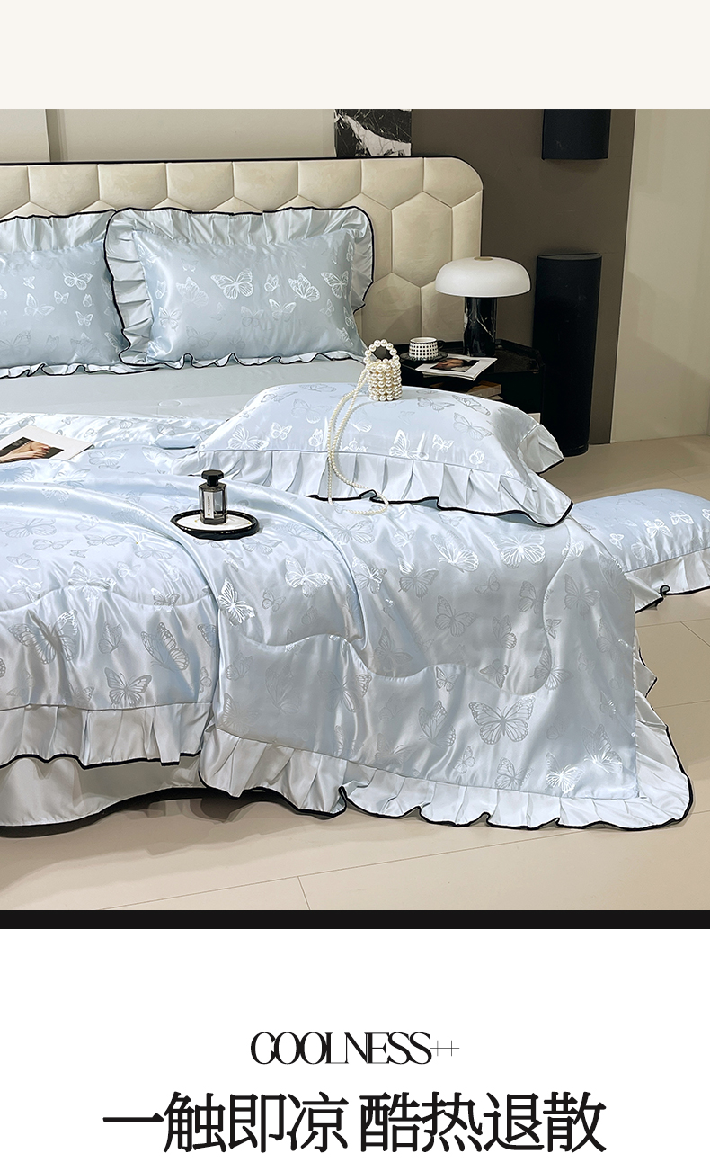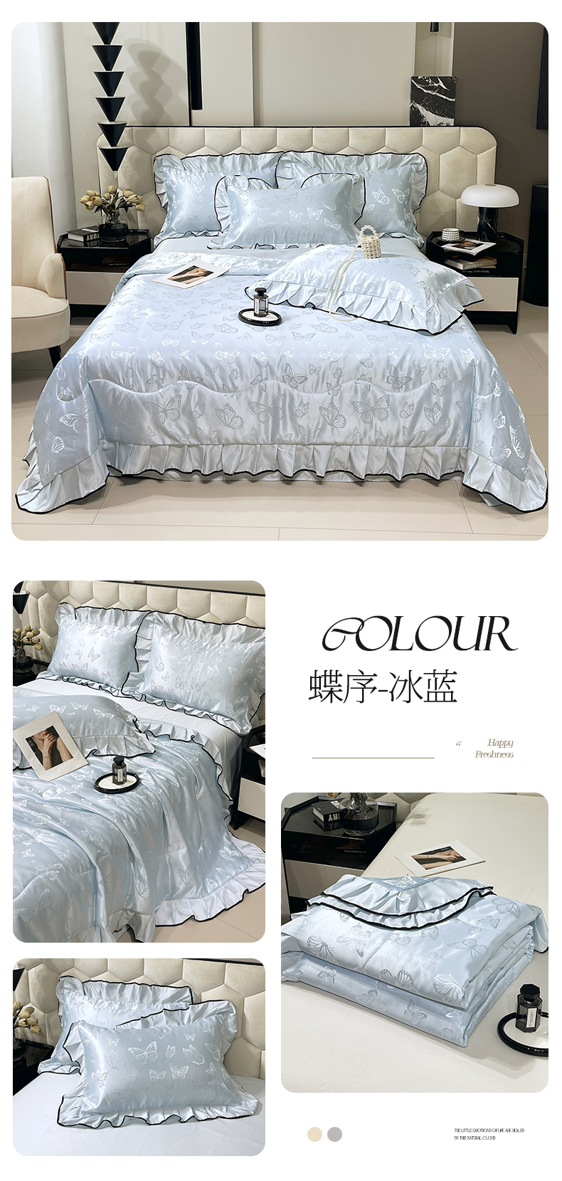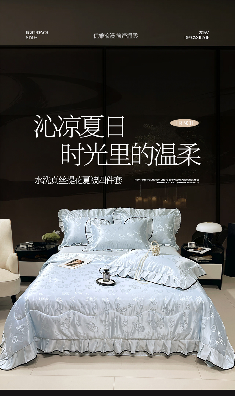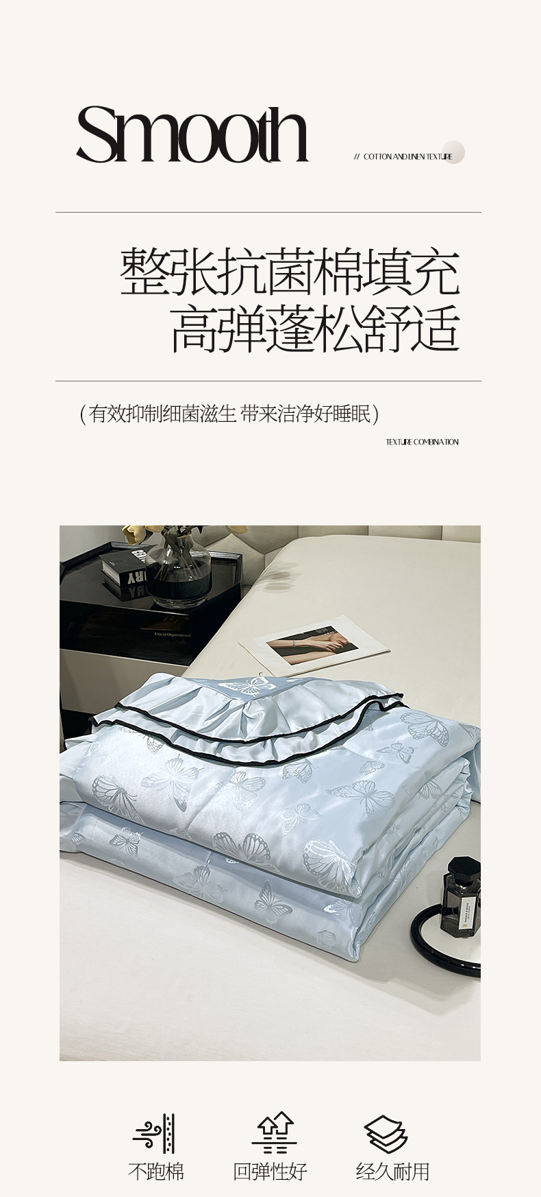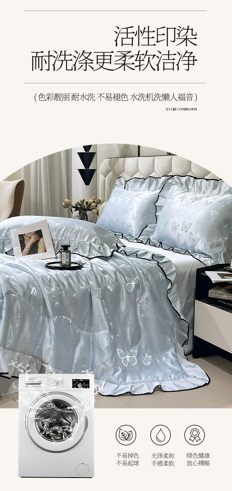 商品名称:慕希家纺 2026新款水洗真丝提花夏被夏凉被空调被-蝶序系列 蝶序-冰蓝