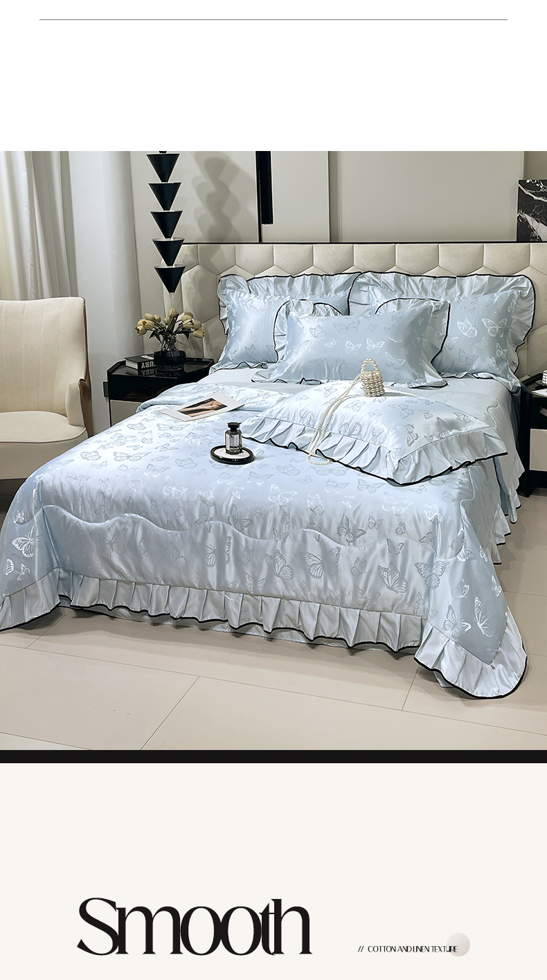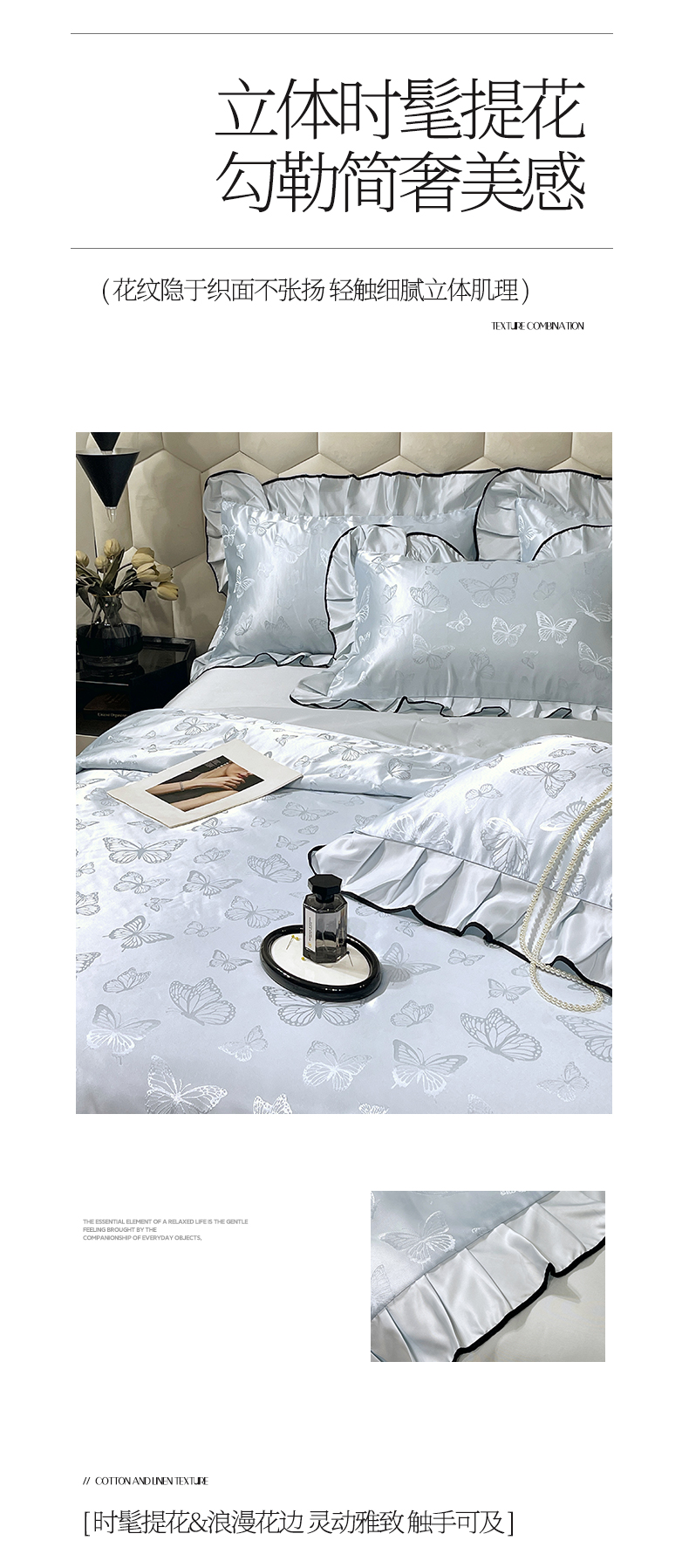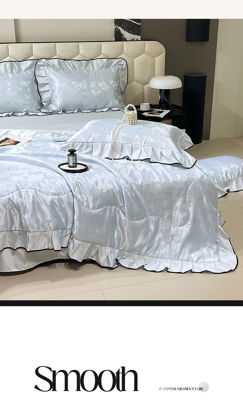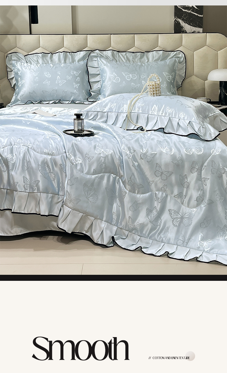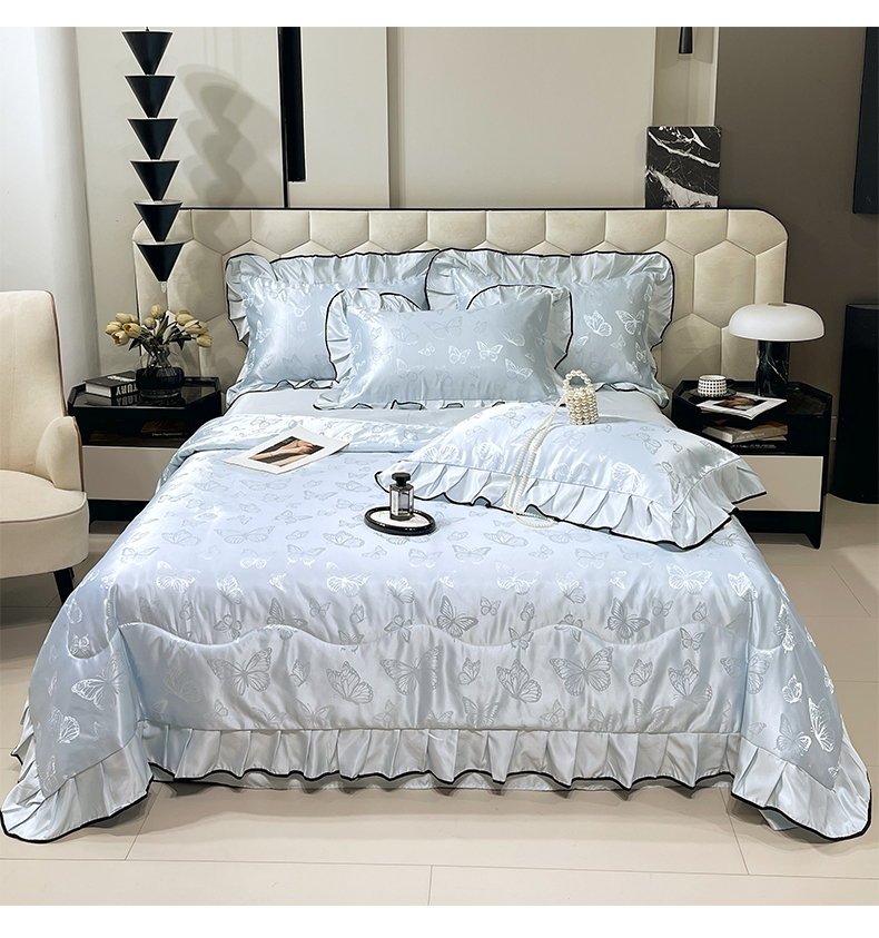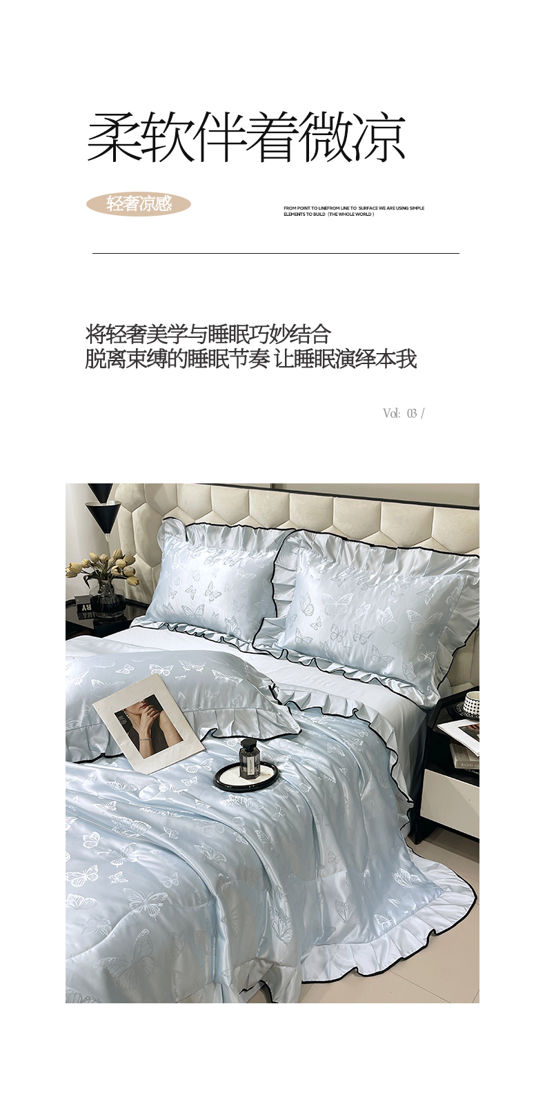 商品名称:慕希家纺 2026新款水洗真丝提花夏被夏凉被空调被-蝶序系列 蝶序-冰蓝