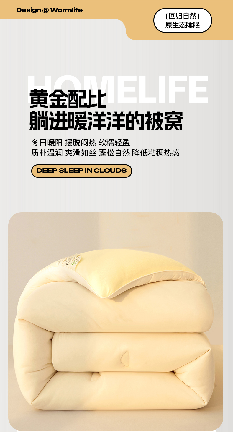 [{"sp_id":11,"sp_name":"\u989c\u8272","sp_format":2,"sp_list":[{"sp_value_id":1663,"sp_value_name":"\u7c73\u767d+\u9e45\u9ec4","sp_value_image":{"id":999,"path":"https:\/\/img3.91jf.com\/ghelp\/2026\/20260417\/20260417100628_561560.jpeg"},"sp_value_video":{"id":0,"img":"","path":"","time":0,"download_num":0,"play_num":0},"price":"38.00","storage":5500,"weight":"1.000","is_check_weight":0,"plus_price":"","sp_sort":0}]},{"sp_id":27,"sp_name":"\u5c3a\u5bf8","sp_format":1,"sp_list":[{"sp_value_id":302,"sp_value_name":"110x150cm2\u65a4","sp_value_image":{"id":0,"path":""},"sp_value_video":{"id":0,"img":"","path":"","time":0,"download_num":0,"play_num":0},"price":"38.00","storage":500,"weight":"1.000","is_check_weight":0,"plus_price":"","sp_sort":5},{"sp_value_id":303,"sp_value_name":"150x200cm4\u65a4","sp_value_image":{"id":0,"path":""},"sp_value_video":{"id":0,"img":"","path":"","time":0,"download_num":0,"play_num":0},"price":"54.00","storage":500,"weight":"2.000","is_check_weight":0,"plus_price":"","sp_sort":6},{"sp_value_id":304,"sp_value_name":"150x200cm6\u65a4","sp_value_image":{"id":0,"path":""},"sp_value_video":{"id":0,"img":"","path":"","time":0,"download_num":0,"play_num":0},"price":"66.00","storage":500,"weight":"3.000","is_check_weight":0,"plus_price":"","sp_sort":7},{"sp_value_id":305,"sp_value_name":"150x200cm8\u65a4","sp_value_image":{"id":0,"path":""},"sp_value_video":{"id":0,"img":"","path":"","time":0,"download_num":0,"play_num":0},"price":"78.00","storage":500,"weight":"4.000","is_check_weight":0,"plus_price":"","sp_sort":8},{"sp_value_id":306,"sp_value_name":"180x220cm5\u65a4","sp_value_image":{"id":0,"path":""},"sp_value_video":{"id":0,"img":"","path":"","time":0,"download_num":0,"play_num":0},"price":"62.00","storage":500,"weight":"2.500","is_check_weight":0,"plus_price":"","sp_sort":9},{"sp_value_id":307,"sp_value_name":"180x220cm8\u65a4","sp_value_image":{"id":0,"path":""},"sp_value_video":{"id":0,"img":"","path":"","time":0,"download_num":0,"play_num":0},"price":"80.00","storage":500,"weight":"4.000","is_check_weight":0,"plus_price":"","sp_sort":10},{"sp_value_id":308,"sp_value_name":"200x230cm6\u65a4","sp_value_image":{"id":0,"path":""},"sp_value_video":{"id":0,"img":"","path":"","time":0,"download_num":0,"play_num":0},"price":"72.00","storage":500,"weight":"3.000","is_check_weight":0,"plus_price":"","sp_sort":11},{"sp_value_id":309,"sp_value_name":"200x230cm8\u65a4","sp_value_image":{"id":0,"path":""},"sp_value_video":{"id":0,"img":"","path":"","time":0,"download_num":0,"play_num":0},"price":"84.00","storage":500,"weight":"4.000","is_check_weight":0,"plus_price":"","sp_sort":12},{"sp_value_id":310,"sp_value_name":"200x230cm10\u65a4","sp_value_image":{"id":0,"path":""},"sp_value_video":{"id":0,"img":"","path":"","time":0,"download_num":0,"play_num":0},"price":"96.00","storage":500,"weight":"5.000","is_check_weight":0,"plus_price":"","sp_sort":13},{"sp_value_id":311,"sp_value_name":"220x240cm6\u65a4","sp_value_image":{"id":0,"path":""},"sp_value_video":{"id":0,"img":"","path":"","time":0,"download_num":0,"play_num":0},"price":"74.00","storage":500,"weight":"3.000","is_check_weight":0,"plus_price":"","sp_sort":14},{"sp_value_id":312,"sp_value_name":"220x240cm10\u65a4","sp_value_image":{"id":0,"path":""},"sp_value_video":{"id":0,"img":"","path":"","time":0,"download_num":0,"play_num":0},"price":"98.00","storage":500,"weight":"5.000","is_check_weight":0,"plus_price":"","sp_sort":15}]}]