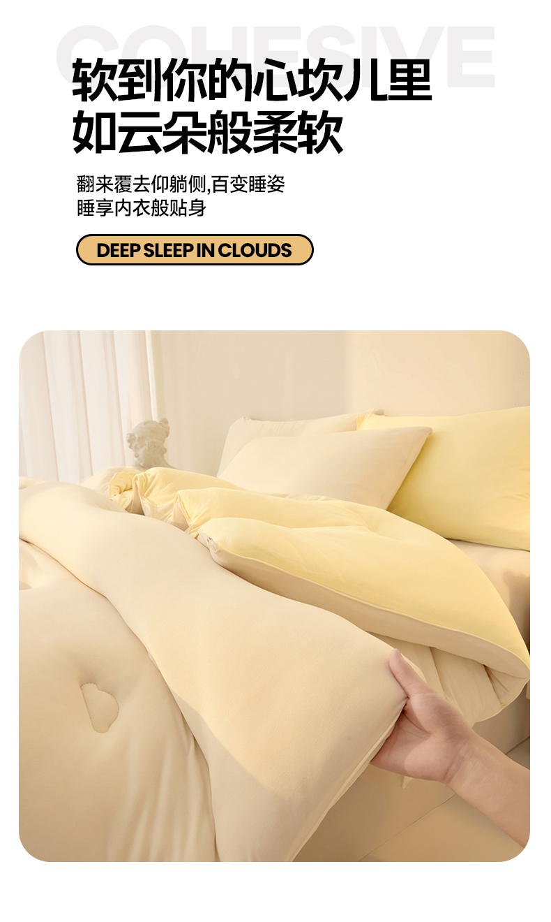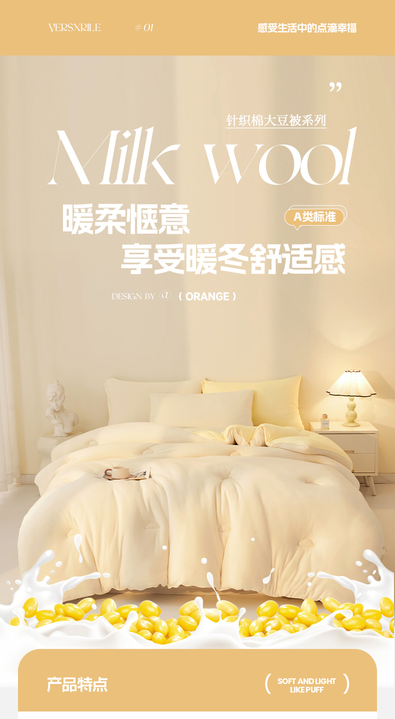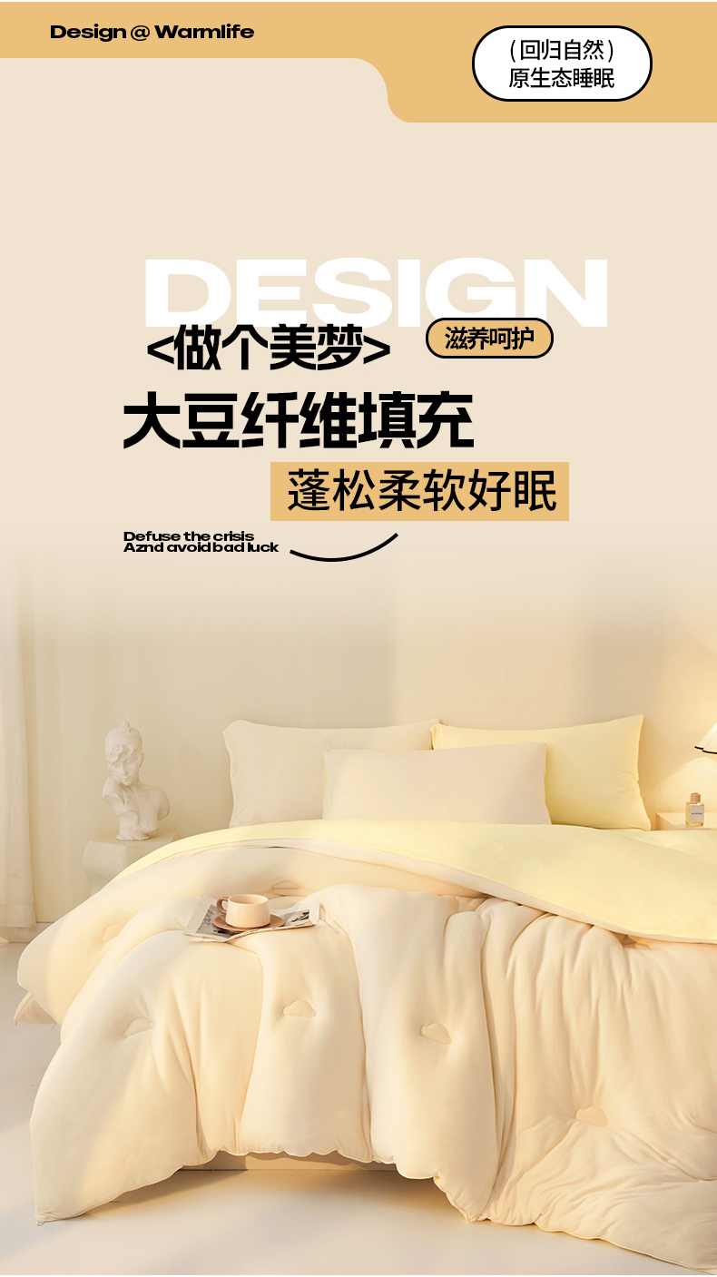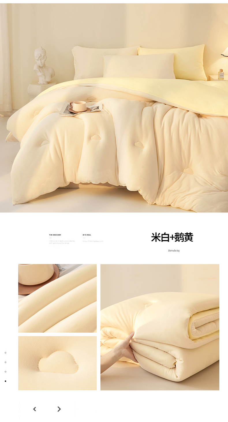 • 91家纺网 家纺一手货源 找家纺 织雅漫 2026新款针织棉大豆被冬被加厚春秋被被子被芯 米白+鹅黄