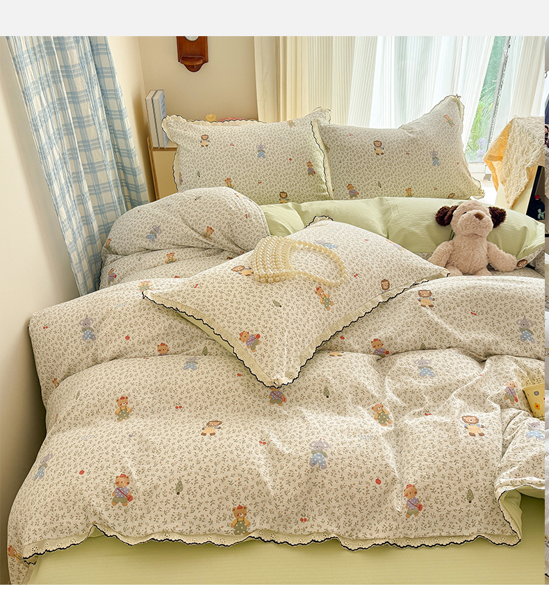(总)温眠家纺 2026新款亲肤舒适甄选三层纱印花套件系列四件套,贩卖夏风-蓝,花丛点点猫,樱桃蝴蝶,蕾丝熊,葡萄腊肠狗,糖豆腊肠狗,星月天空,樱桃物语,雨爱,圆舞曲,芭乐米菲,彩波波,彩虹世界,动物团团,莓果结,梅森粉,莫奈-咖,沐风,秋月梨,小狗集合会,小黑豆,小花点点,幸运星,南瓜派,复古修狗,碱水结,蓝莓小猫,玫瑰夜-绿